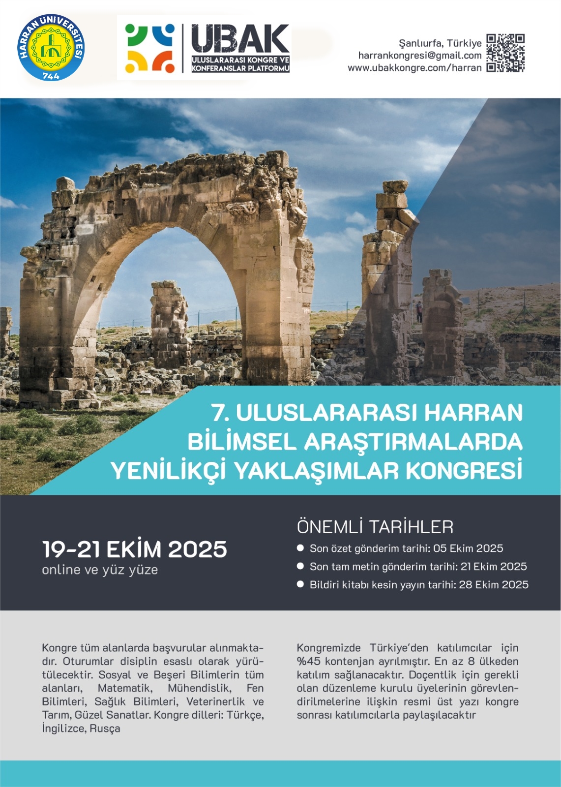 7.ULUSLARARASI HARRAN BİLİMSEL ARAŞTIRMALARDA YENİLİKÇİ YAKLAŞIMLAR KONGRESİ