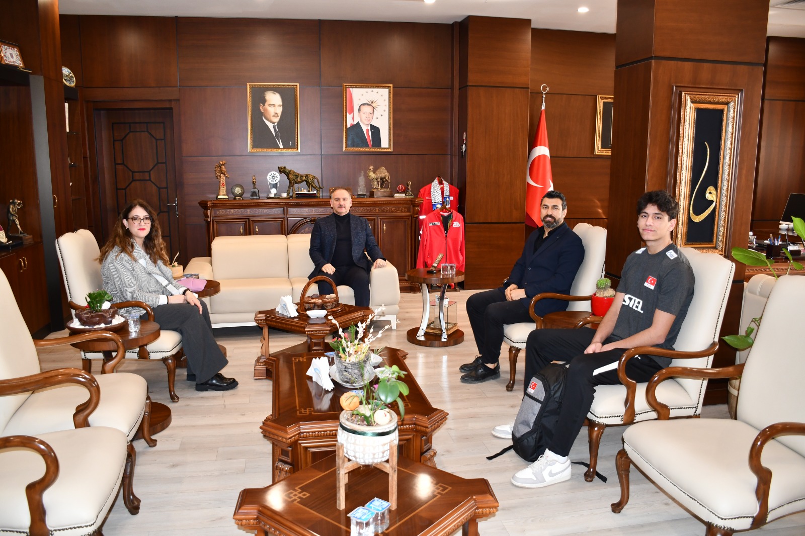 Turnuva sonrası memleketi Şanlıurfa’ya gelen milli sporcu, Harran Üniversitesi Rektörü Prof. Dr. Mehmet Tahir Güllüoğlu’nu ziyaret ederek U18 Milli Takım formasını hediye etti. Ziyarette BESYO Müdürü Prof. Dr. Yakup Aktaş ile BESYO Müdür Yardımcısı ve Bölüm Başkanı Dr. Öğr. Üyesi Cansu Çoban da hazır bulundu.