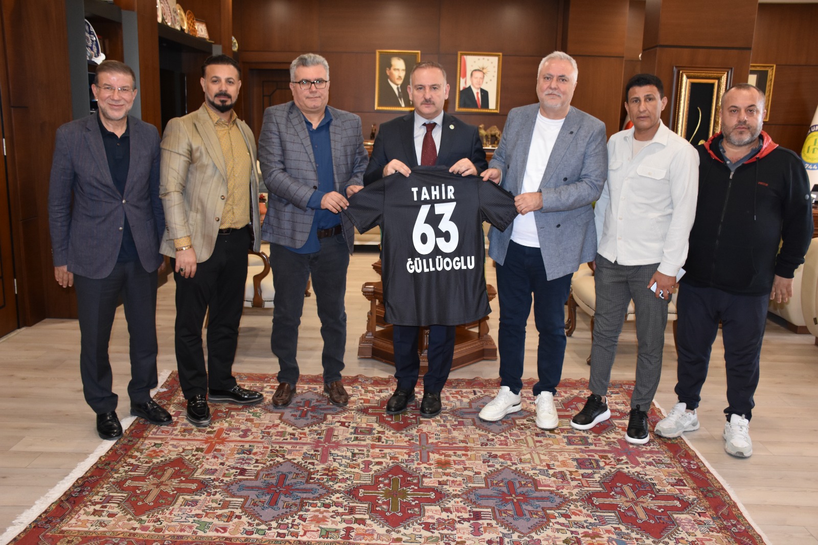Şanlıurfaspor Kulübü yönetimi, Harran Üniversitesi Rektörü Prof. Dr. Mehmet Tahir Güllüoğlu’nu makamında ziyaret etti. Ziyarette, kulüp yöneticileri Şanlıurfaspor’a yönelik sürekli desteklerinden dolayı Rektör Prof. Dr. Güllüoğlu’na teşekkürlerini iletti.