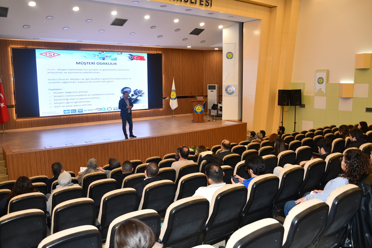 Türk Standardları Enstitüsü (TSE) Güneydoğu Bölge Koordinatörü Rıza Buğra Alp Giray Okumuş tarafından verilen eğitimin; üniversitedeki kalite bilincini güçlendirmesi, kurumsal süreçlerin daha etkin ve sürdürülebilir şekilde yürütülmesine katkı sağlaması hedefleniyor.