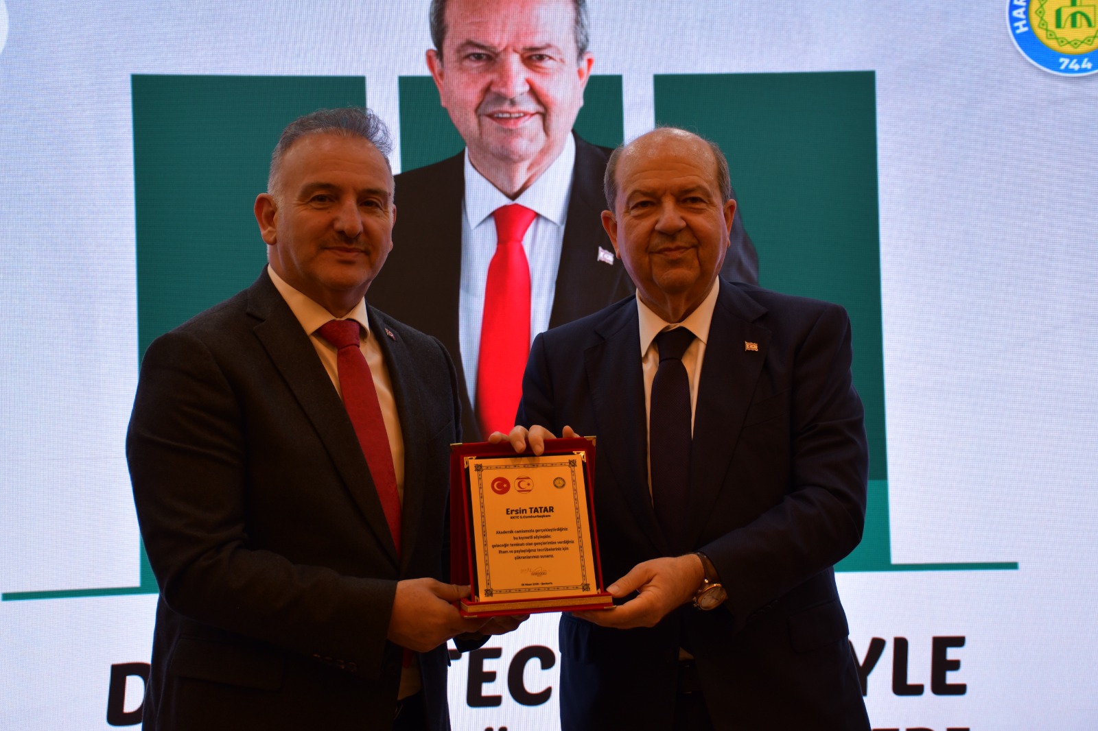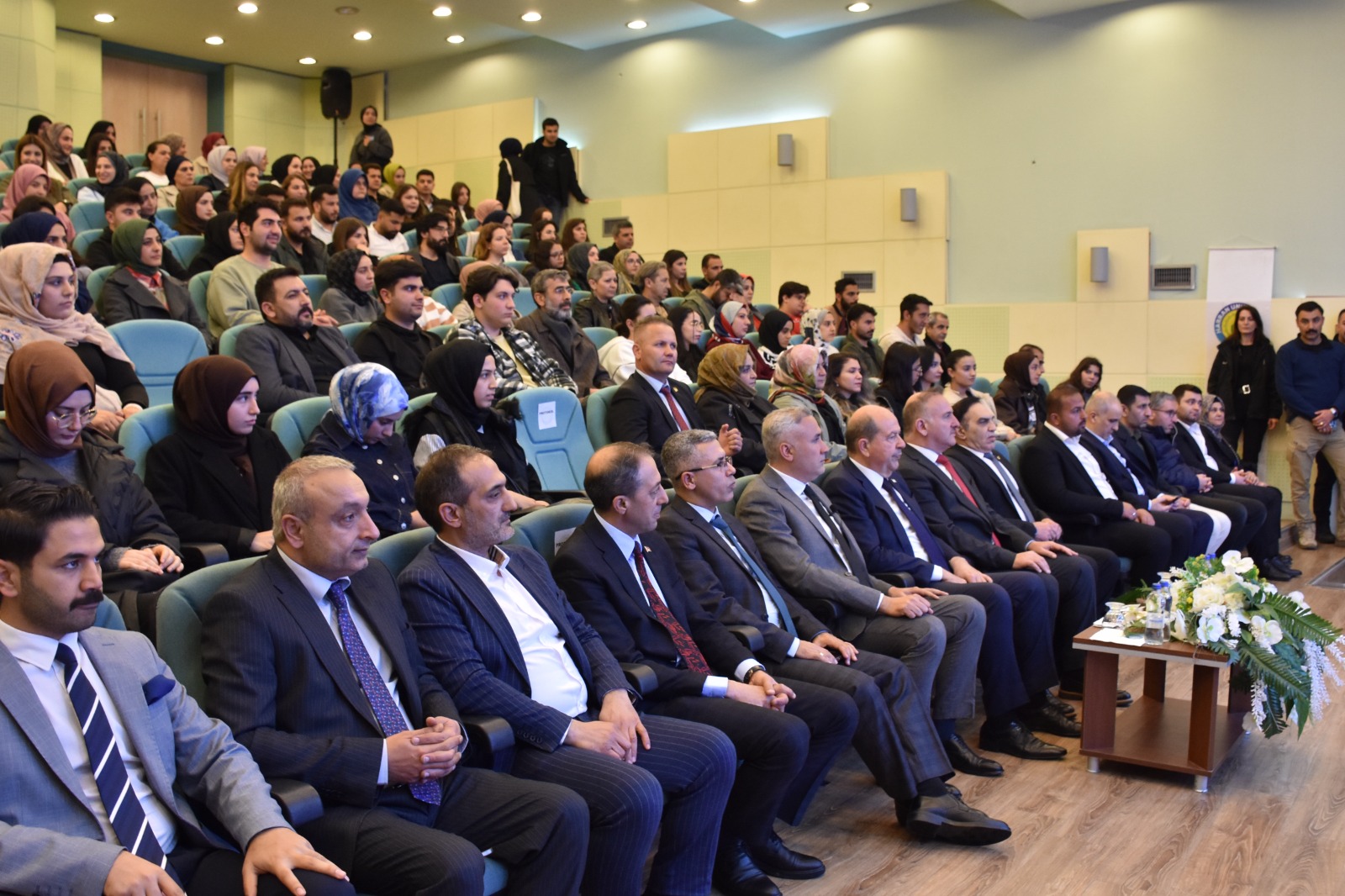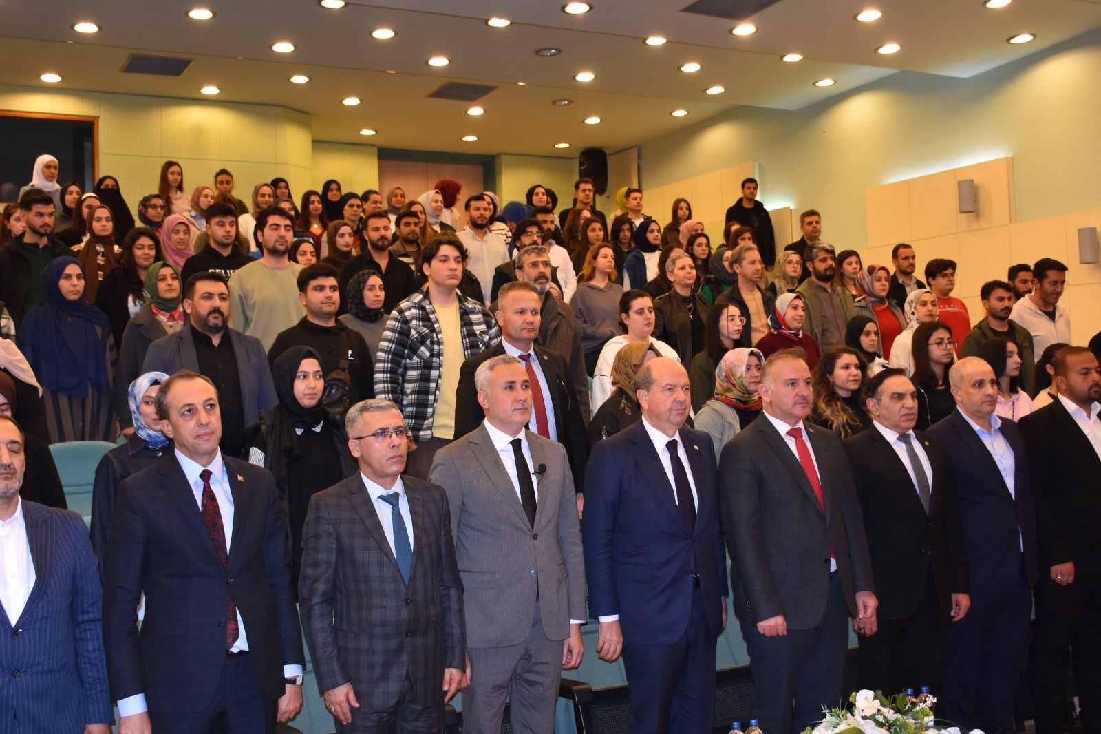 Fen-Edebiyat Fakültesi konferans salonunda düzenlenen programa; Cumhurbaşkanı Ersin Tatar’ın yanı sıra Rektörümüz Prof. Dr. Mehmet Tahir Güllüoğlu, Rektör Yardımcısı Prof. Dr. Ahmet İlyas, yöneticiler, akademisyenler ve çok sayıda öğrenci katıldı.