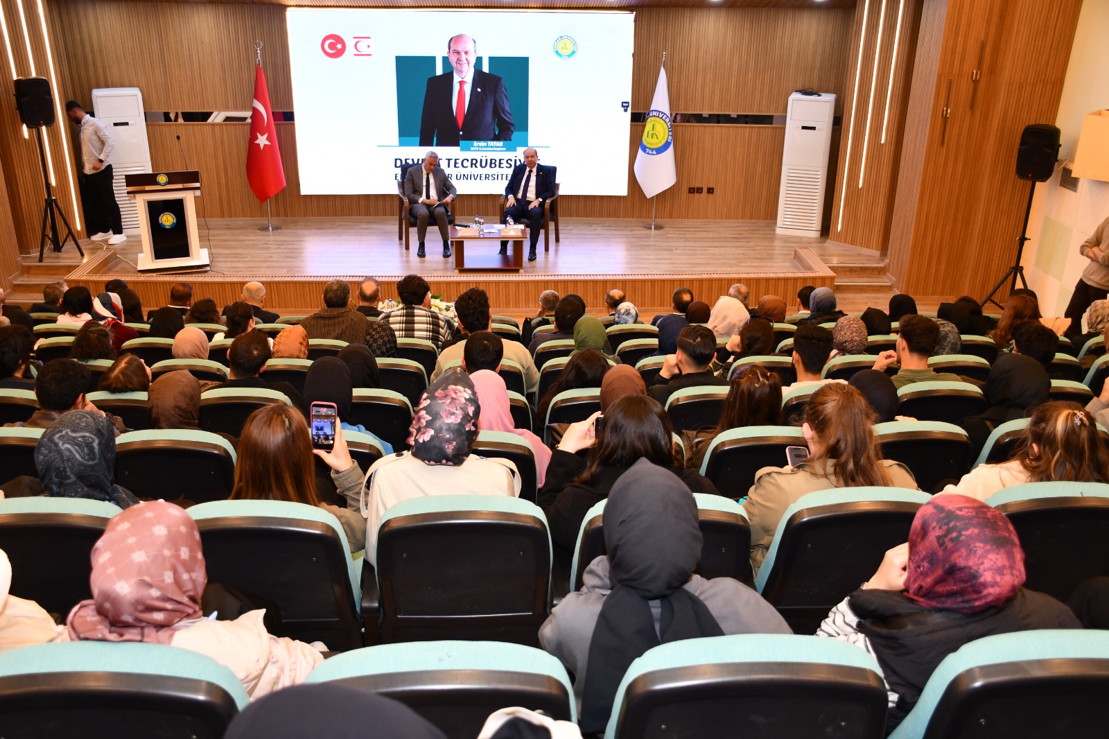 Üniversitemiz ev sahipliğinde, Kuzey Kıbrıs Türk Cumhuriyeti 5. Cumhurbaşkanı Ersin Tatar tarafından “Devlet Tecrübesi” konulu bir konferans gerçekleştirildi.