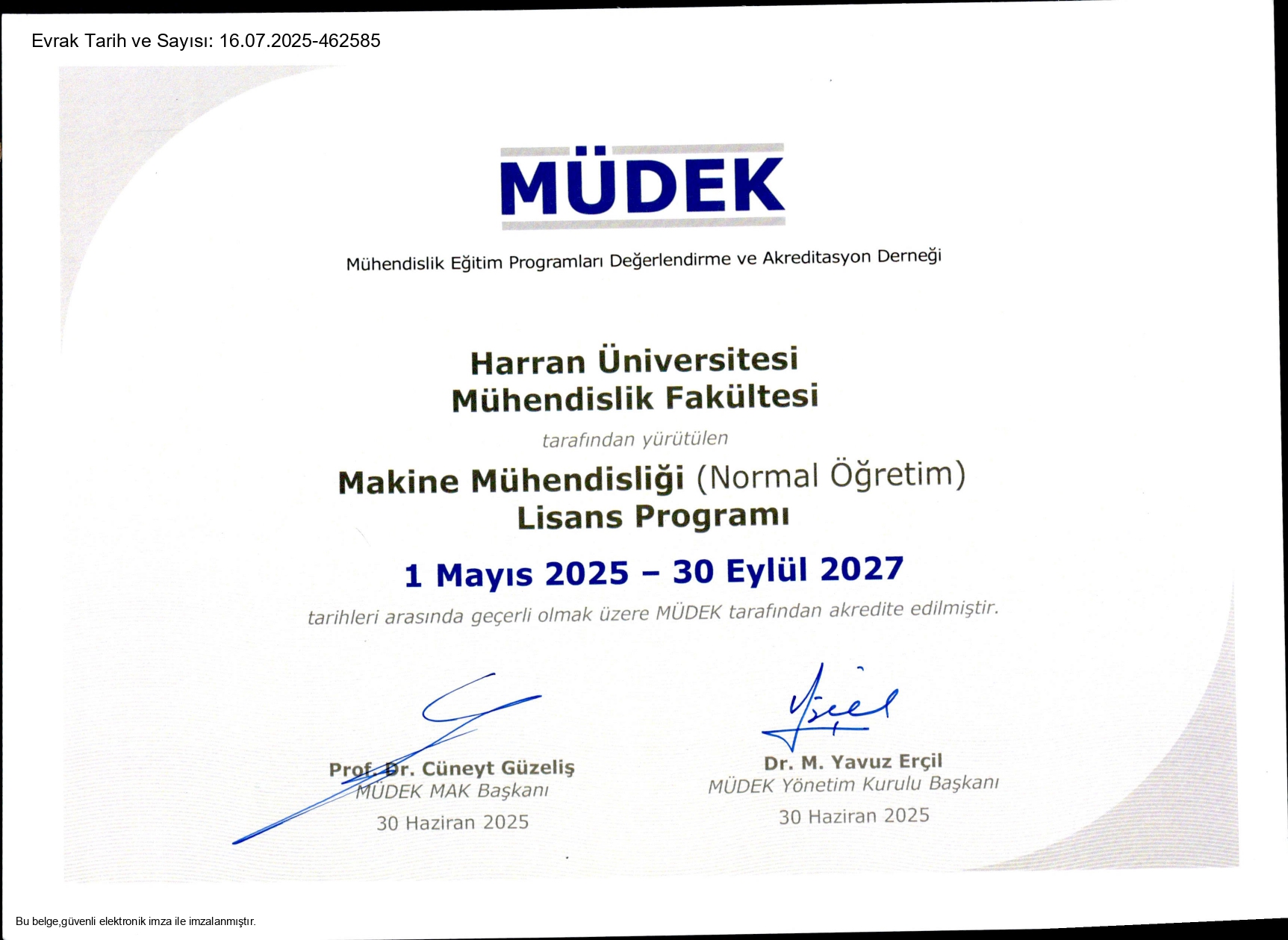 Bu akreditasyon, Makine Mühendisliği Bölümü’nün eğitim kalitesinin hem ulusal hem de uluslararası standartlara uygun olduğunu tescillemektedir. Söz konusu akreditasyon, MÜDEK’in resmi internet sitesinde “Akreditasyon Verilen Lisans Programları” listesine eklenerek kamuoyuyla da paylaşıldı.
