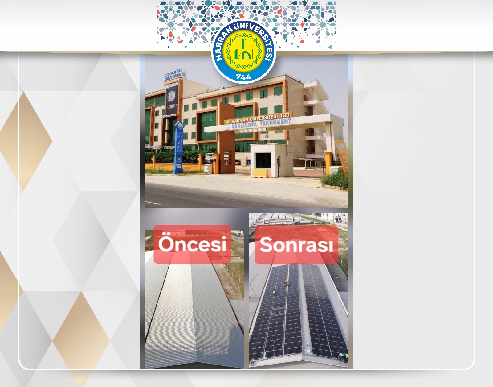 Şanlıurfa Teknokent Genel Müdürü Doç. Dr. İ. Berkan AYDİLEK'in yaptığı açıklamada: "Şanlıurfa Teknokent tarihinde uzun zamandır hayali kurulan GES'i, projelendirme, proje desteği bulma ve en sonunda aktif, çalışır halde hayata geçirmenin mutluluğu içindeyiz.