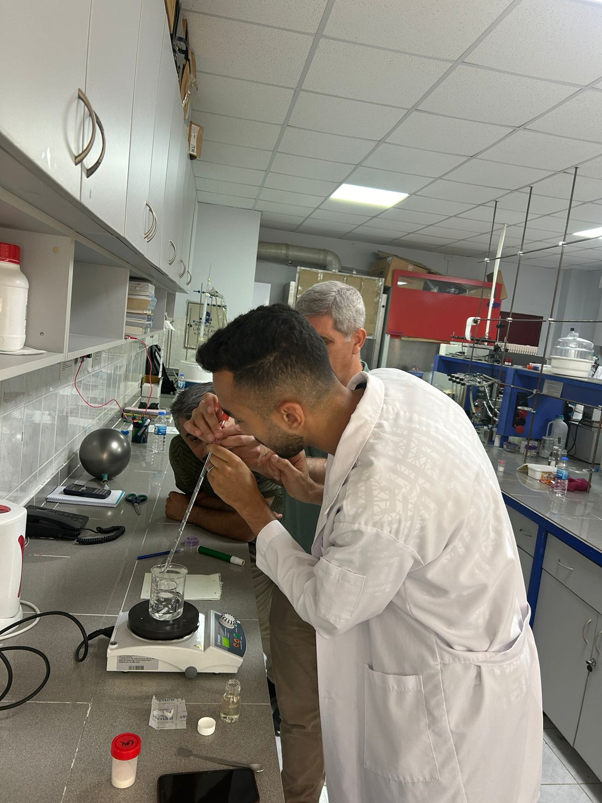 Ziyaret süresince, üniversitemiz Kimya Bölümü’nden Prof. Dr. Mustafa Değirmenci ve doktora öğrencisi Şükrü Esin ile birlikte laboratuvar çalışmaları yapıldı; karşılıklı fikir alışverişinde bulunuldu.