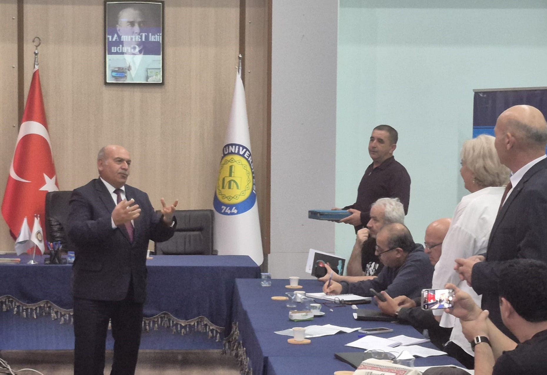 Program, açılış konuşmalarının ardından bilimsel sunumlarla devam etti. İlk olarak Prof. Dr. Ali Fuat Tarı modern sulama yöntemleri üzerine bir sunum gerçekleştirirken, ardından Prof. Dr. Ahmet Yılmaz sürdürülebilir tarım çalışmaları hakkında önemli bilgiler paylaştı. Son olarak Dr. Öğr. Üyesi Emrah Ramazanoğlu hassas tarım teknolojileri alanındaki güncel gelişmeleri heyetle paylaştı.