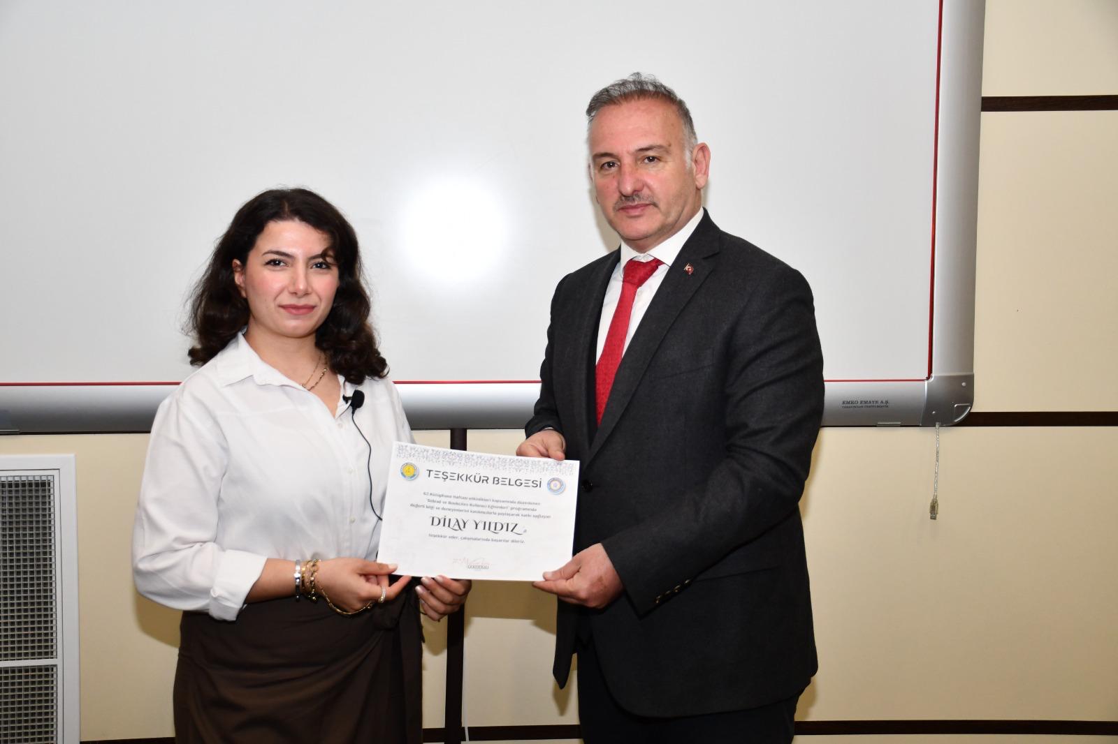 Kütüphane Konferans Salonu’nda düzenlenen programa; Rektörümüz Prof. Dr. Mehmet Tahir Güllüoğlu’nun yanı sıra Rektör Yardımcısı Prof. Dr. Nihat Denek, Genel Sekreter Zübeyir Zorlu, Kütüphane ve Dokümantasyon Daire Başkan Müslüm Özer, birim müdürleri, idari personel ve öğrenciler katıldı.