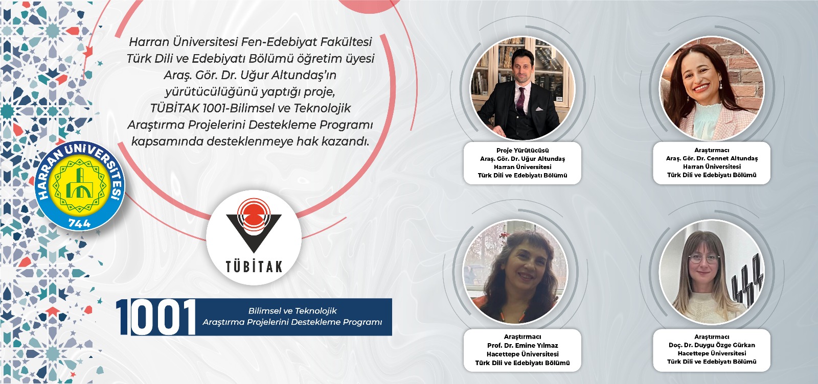 Projede ayrıca Fen-Edebiyat Fakültemiz Türk Dili ve Edebiyatı Bölümü’nden Araş. Gör. Dr. Cennet Altundaş, Hacettepe Üniversitesi’nden Prof. Dr. Emine Yılmaz ve Doç. Dr. Duygu Özge Gürkan araştırmacı olarak görev almaktadır.