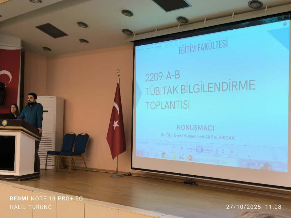 27 Ekim 2025 tarihinde Dr. Öğr. Üyesi Muhammed Ali PALABIÇAK tarafından fakültemiz akademisyenleri ve öğrencilerine TÜBİTAK 2209 Öğrenci Projeleri ile ilgili bilgilendirme semineri yapıldı. Seminer soru-cevap ve belge takdimi ile sonlandı. Tüm katılımcılara teşekkürlerimizi sunuyoruz.