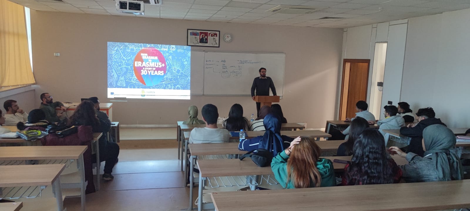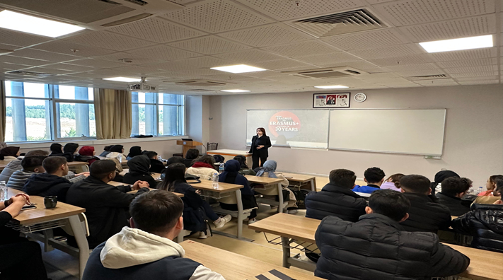 Bölümlerin Erasmus koordinatörleri tarafından yapılan bilgilendirme sunumları, öğrencilerimizin yoğun ilgisi ve aktif katılımıyla gerçekleştirilmiştir. Toplantılar sırasında, Erasmus+ programına ilişkin öğrenci soruları yanıtlanmış, programdan faydalanabilmeleri adına sağlanacak destekler paylaşılmıştır.