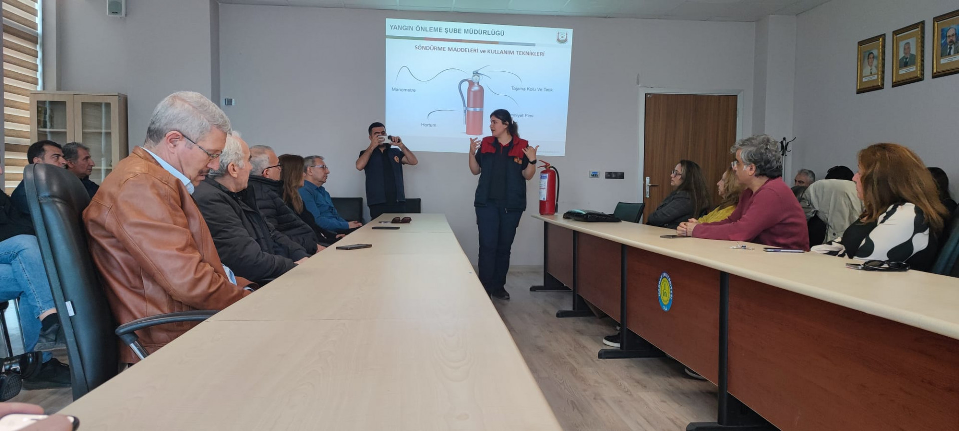 Fakültemiz öğrencileri ve personeline yönelik olarak yangının yapısı, gelişimi ve ilk müdahale konularında eğitim düzenlendi.