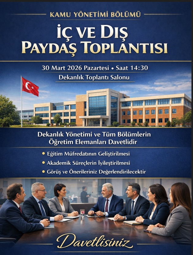 Bölümlerimizin yürüttüğü faaliyetlerin paydaş görüşleriyle desteklenmesi ve ilgili süreçlerin bu katkılar doğrultusunda gözden geçirilmesi, toplantıların temel amaçları arasında yer aldı. İktisat, Kamu Yönetimi ve Maliye Bölümlerimiz tarafından gerçekleştirilen toplantılarla, iç ve dış paydaşlarla kurulan iletişimin güçlendirilmesi, karşılıklı görüş alışverişinin sürdürülmesi ve eğitim-öğretim süreçlerine ilişkin önerilerin ilgili akademik değerlendirmelere katkı sunması amaçlandı. Bu çerçevede, paydaşların katkılarının bölüm bazında yürütülen kalite ve gelişim odaklı çalışmalara destek sağlaması hedeflenmektedir.