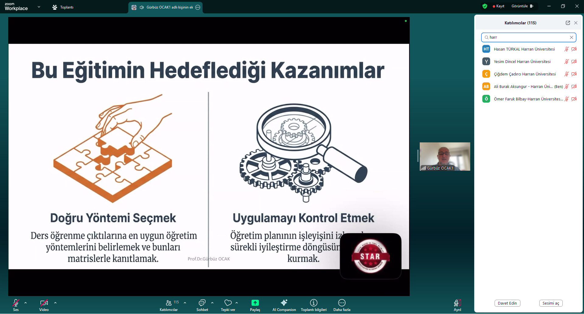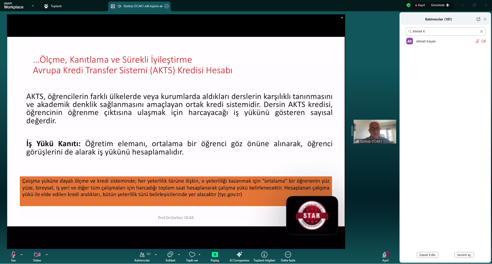 STAR Öz Değerlendirme Raporu (ÖDR) hazırlama eğitimi kapsamında 28 Şubat 2026 tarihli oturumlarda; Ölçüt 4 oturumunda eğitim-öğretim süreçlerinin planlanması ve yürütülmesi, öğretim planı/müfredat yapısı, ders bilgi paketleri ve uygulama süreçlerine ilişkin raporlama yaklaşımı değerlendirilmiştir. Ölçüt 5: Öğretim Kadrosu oturumunda ise öğretim üyesi atama ve yükseltme kriterleri, ders yükü dengesinin kurulması, eğiticilerin eğitimi ve sürekli gelişim süreçleri ile öğretim kadrosunun sayısal ve niteliksel yeterliliğinin analiz edilmesi ve akademik teşvik/destek mekanizmalarının raporlanmasına ilişkin başlıklar ele alınmıştır.