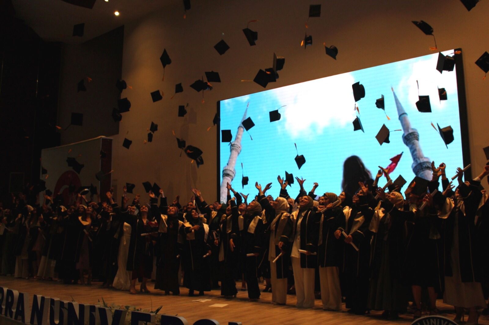 Fakültemizin 2024-2025 eğitim-öğretim yılı bahar dönemi sonunda mezun olmaya hak kazanan Hemşirelik Bölümü öğrencileri, düzenlenen tören ile mezuniyet belgelerini aldı. Üniversitemizin Osmanbey Kampüsü İktisadi ve İdari Bilimler Fakültesi Amfi salonunda gerçekleştirilen mezuniyet törenine; akademisyenlerimiz, öğrencilerimiz ve aileleri katıldı. Mezuniyet töreni öğrencilerimizin uluslararası hemşirelik andını okumasının ardından kep atması ile coşku doruğa ulaştı.