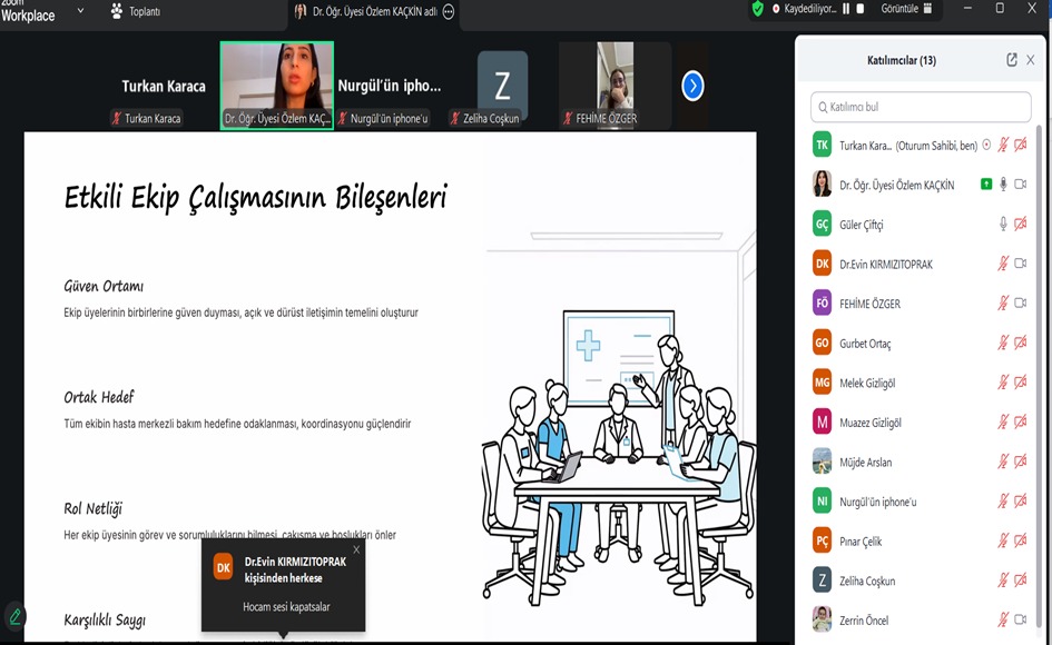 Fakültemiz Hemşirelik Bölümünde öğrenci uygulamalarında görev alacak rehber hemşirelere yönelik eğitim programı gerçekleştirilmiştir. Program kapsamında rehber hemşirenin klinik eğitim sürecindeki yeri, görev ve sorumlulukları, etkili iletişim becerileri ve etik duyarlılık konularında bilgilendirme yapılmıştır.
