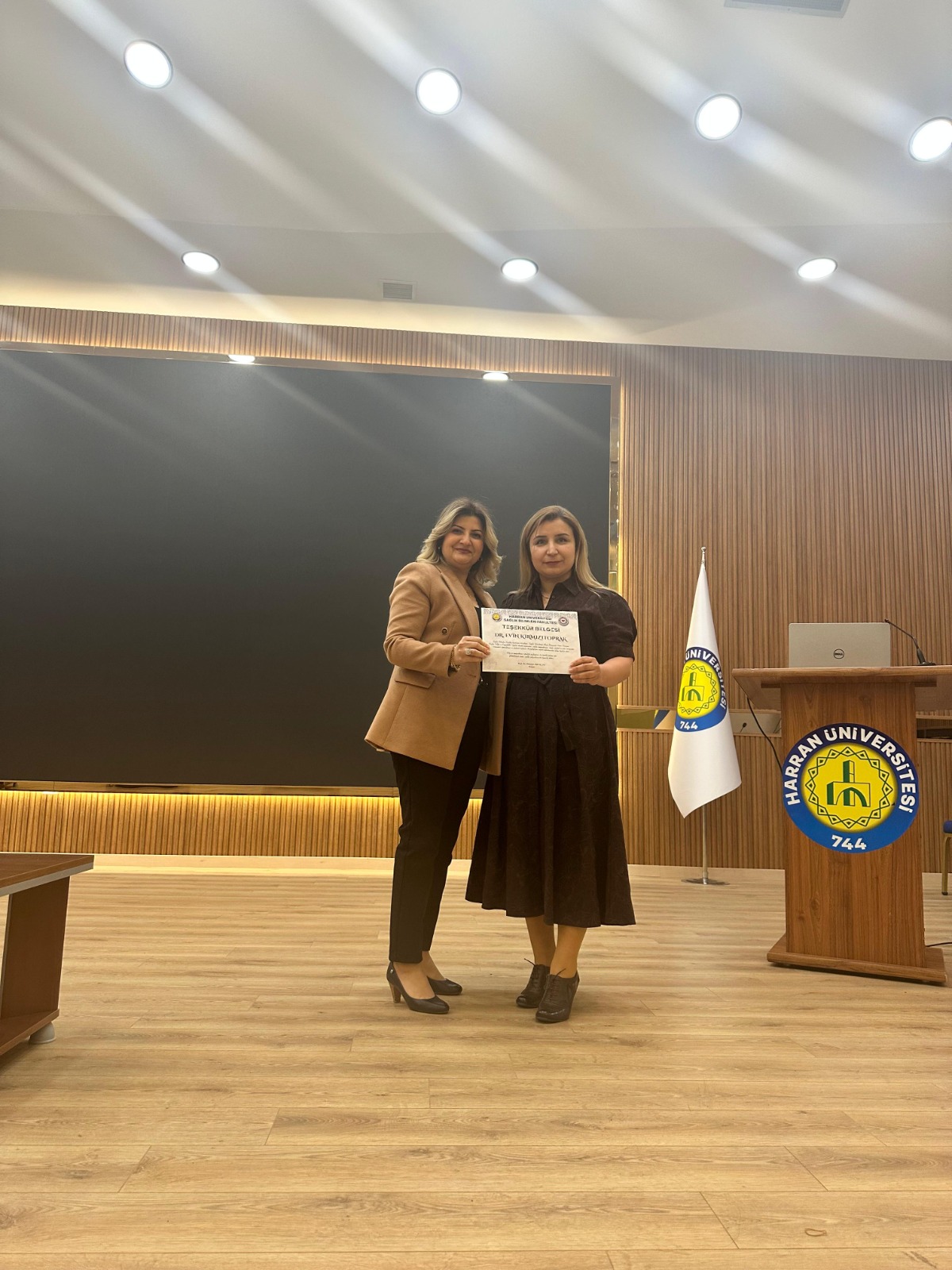 Programın sonunda, katkılarından dolayı Dr. Evin Kırmızıtoprak’a Sağlık Bilimleri Fakültesi Dekan Yardımcısı Prof. Dr. Fatma Koruk tarafından teşekkür belgesi takdim edildi.