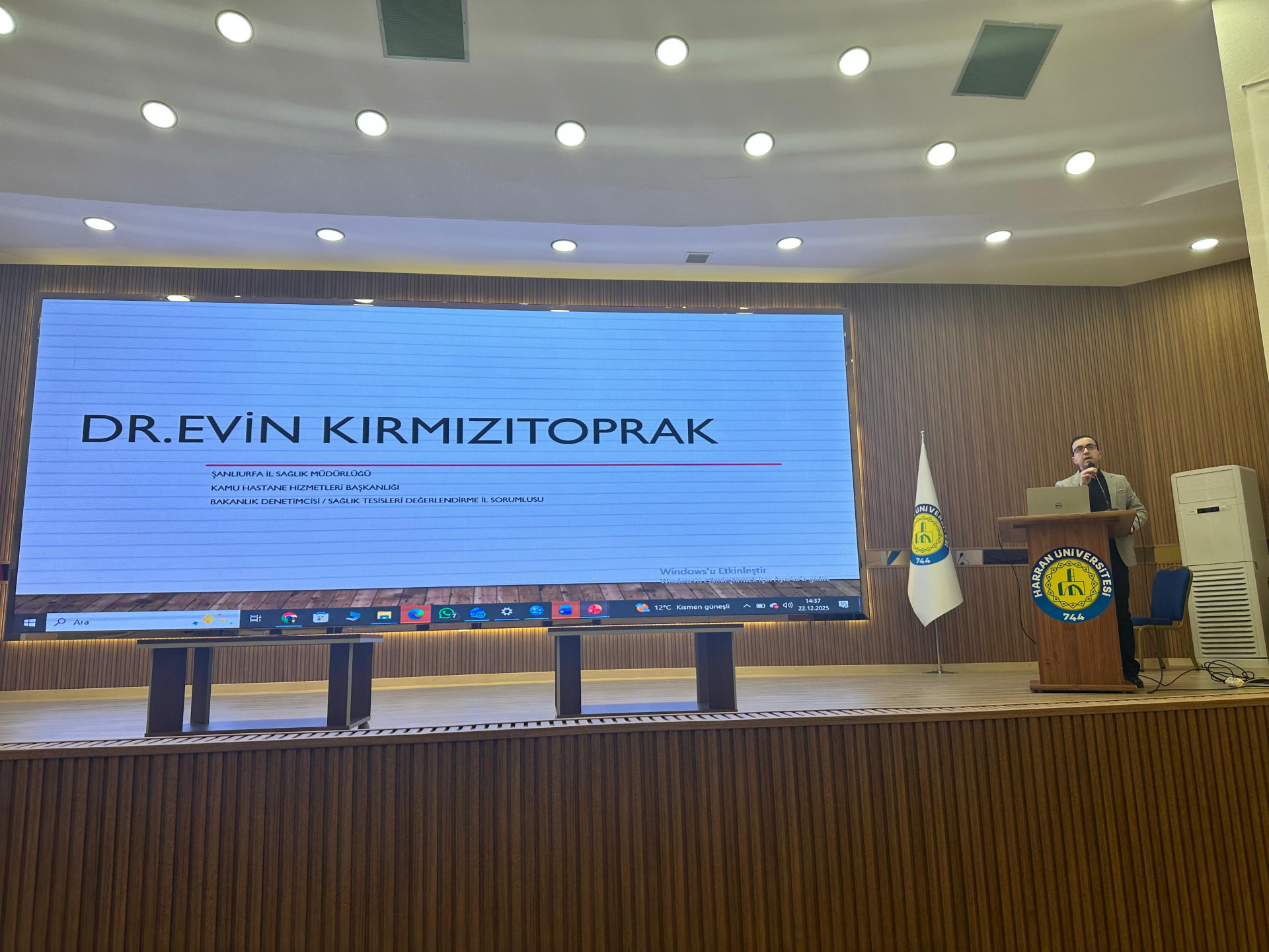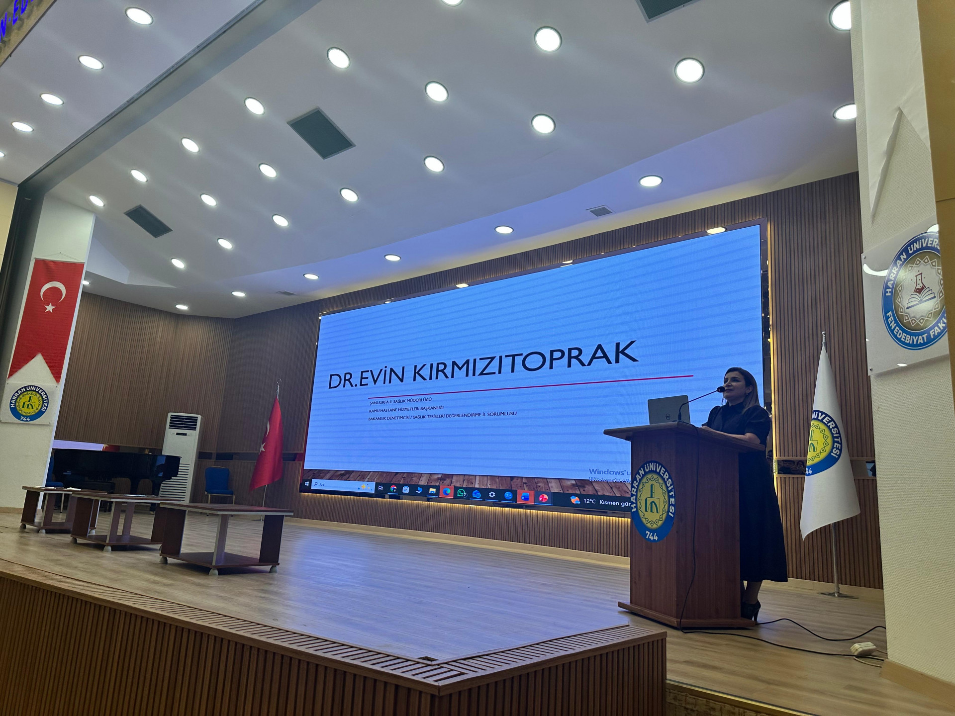 Etkinliğin konuşmacısı, klinik hemşirelik deneyiminin il düzeyinde sağlık tesislerinin değerlendirilmesi ve izlenmesi süreçlerinde aktif görev üstlenen Şanlıurfa İl Sağlık Müdürlüğü Kamu Hastane Hizmetleri Başkanlığı bünyesinde görev yapan Bakanlık Denetimcisi ve Sağlık Tesisleri Değerlendirme İl Sorumlusu Dr. Evin Kırmızıtoprak oldu. Dr. Kırmızıtoprak, “Sağlık Bilimlerinde Klinik Uygulamadan Sistem Düzeyine: Mesleki Etkiyi Genişletmek” başlıklı sunumunda, klinik deneyimin sağlık sistemi içerisindeki stratejik rolünü ve mesleki etkinin farklı düzeylerde nasıl genişletilebileceğini katılımcılarla paylaştı.