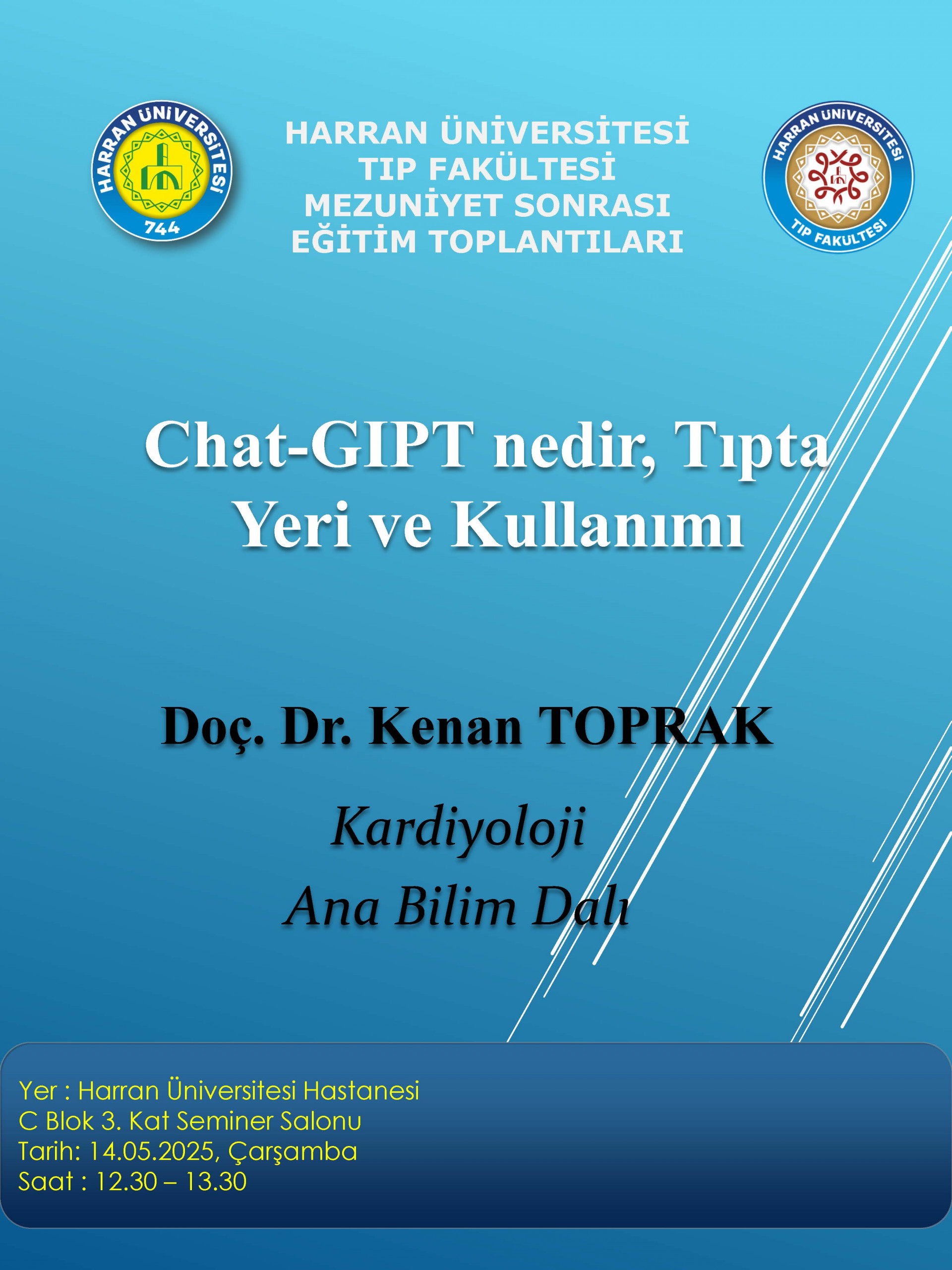 Fakültemiz Mezuniyet Sonrası Toplantıları kapsamında "Chat-GIPT nedir, Tıpta Yeri ve Kulanımı" konulu toplantı yapılacaktır (14.05.2025).