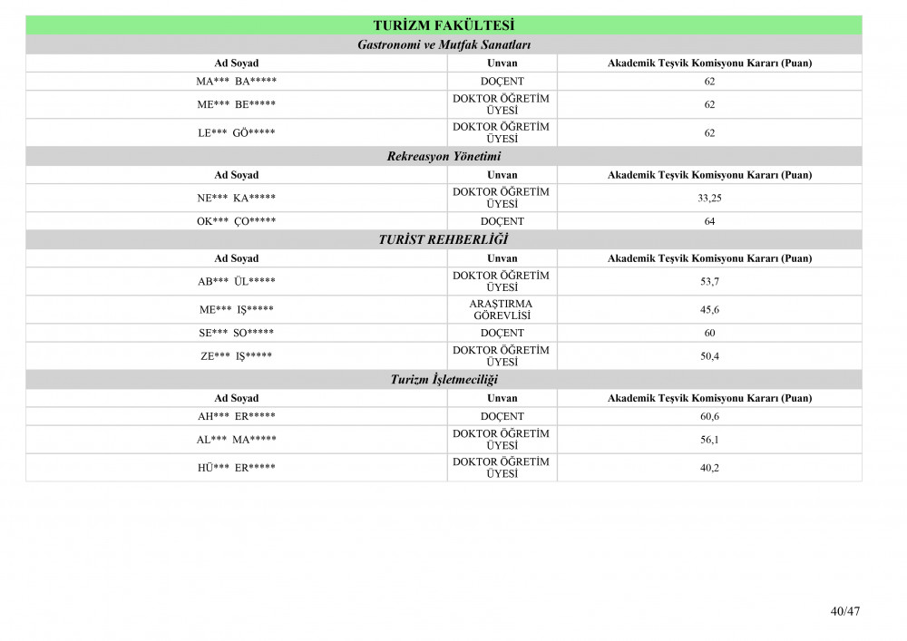 Turizm Fakültesi 2025 Yılı Akademik Teşvik Ödeneği Kesin Sonuçları