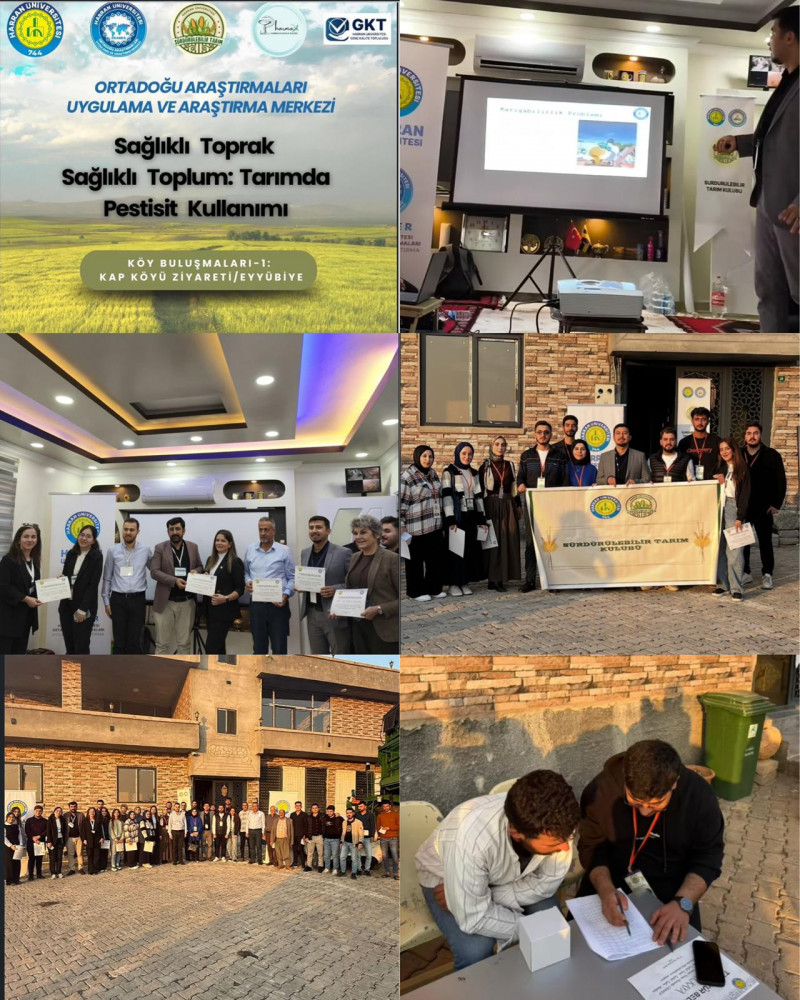 Sürdürülebilir Tarım Öğrenci Kulübü olarak, üniversitemiz ORAMER Birimi iş birliğiyle Şanlıurfa-Eyyübiye-KAP Köyü’nde anlamlı bir çiftçi bilgilendirme etkinliği gerçekleştirdik. Etkinlik kapsamında, tarımsal üretimde yaygın olarak kullanılan pestisitlerin insan sağlığı, çevre ve ekosistem üzerindeki olumsuz etkileri üzerine bilgilendirici sunumlar yapıldı. Akademik bilgi ile sahadaki üretim pratiğini bir araya getirmeyi amaçlayan bu etkinlikte, çiftçilerimizin pestisit kullanımı konusundaki bilgi düzeyleri, tutumları ve farkındalıklarını ölçmeye yönelik anket çalışmaları da yürütüldü. Elde edilen geri bildirimler, sürdürülebilir tarım uygulamalarının yaygınlaştırılmasına yönelik yapılacak akademik ve uygulamalı çalışmalara önemli katkılar sunacaktır. Karşılıklı bilgi paylaşımına dayalı bu ziyaret sayesinde, üniversite–üretici iş birliğini güçlendiren, sürdürülebilir ve çevre dostu tarım anlayışını destekleyen verimli bir etkileşim ortamı oluşturulmuştur. Kıymetli çiftçilerimizin yoğun ilgisi ve katkıları, bu tür etkinliklerin ne denli önemli ve gerekli olduğunu bir kez daha ortaya koymuştur. Sürdürülebilir Tarım Öğrenci Kulübü olarak, bilimsel bilginin sahaya aktarılmasını ve üreticilerimizin bilinçli tarım uygulamaları konusunda desteklenmesini amaçlayan çalışmalarımıza kararlılıkla devam edeceğiz.