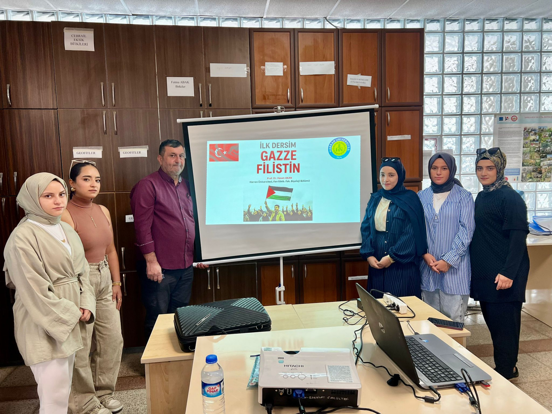 Harran Üniversitesi Fen-Edebiyat Fakültesi Biyoloji Bölümü öğretim üyesi Prof. Dr. Hasan AKAN, dersinde Gazze’de yaşanan insani drama dikkat çekti.