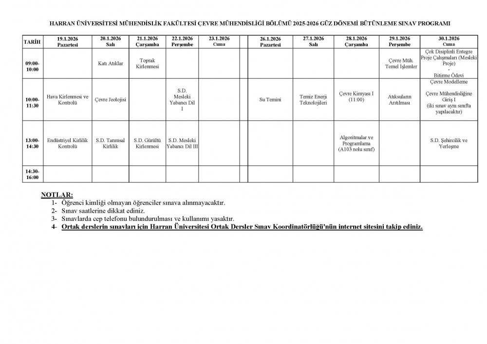 Güncellenmiş güz dönemi bütünleme programı için tıklayınız.