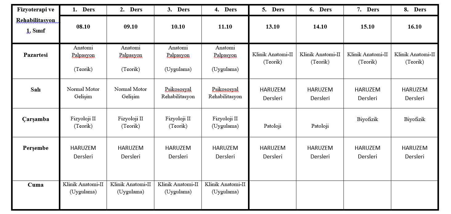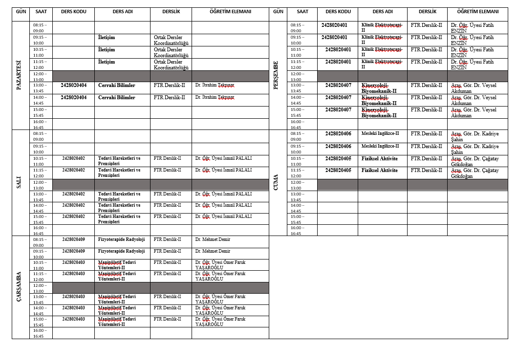 2025–2026 akademik yılı bahar dönemine ait ders programı, ders gün, saat ve derslik bilgileri aşağıda yer almaktadır.