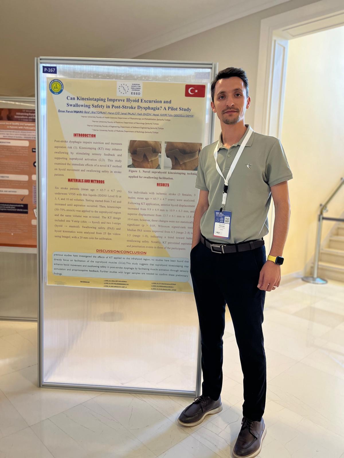 Fizyoterapi ve Rehabilitasyon Bölümü hocalarımızdan Dr. Öğr. Üyesi Ömer Faruk YAŞAROĞLU, Atina’da düzenlenen Avrupa Yutma Bozuklukları Kongresi (ESSD 2025)’ne katılarak, yeni bantlama tekniği ve yerli kıvam arttırıcı üzerine yapılan çalışmalarını bilimsel bir toplantıda sunma fırsatı buldu. Bölümümüzü uluslararası platformda temsil eden hocamızı tebrik ediyoruz.