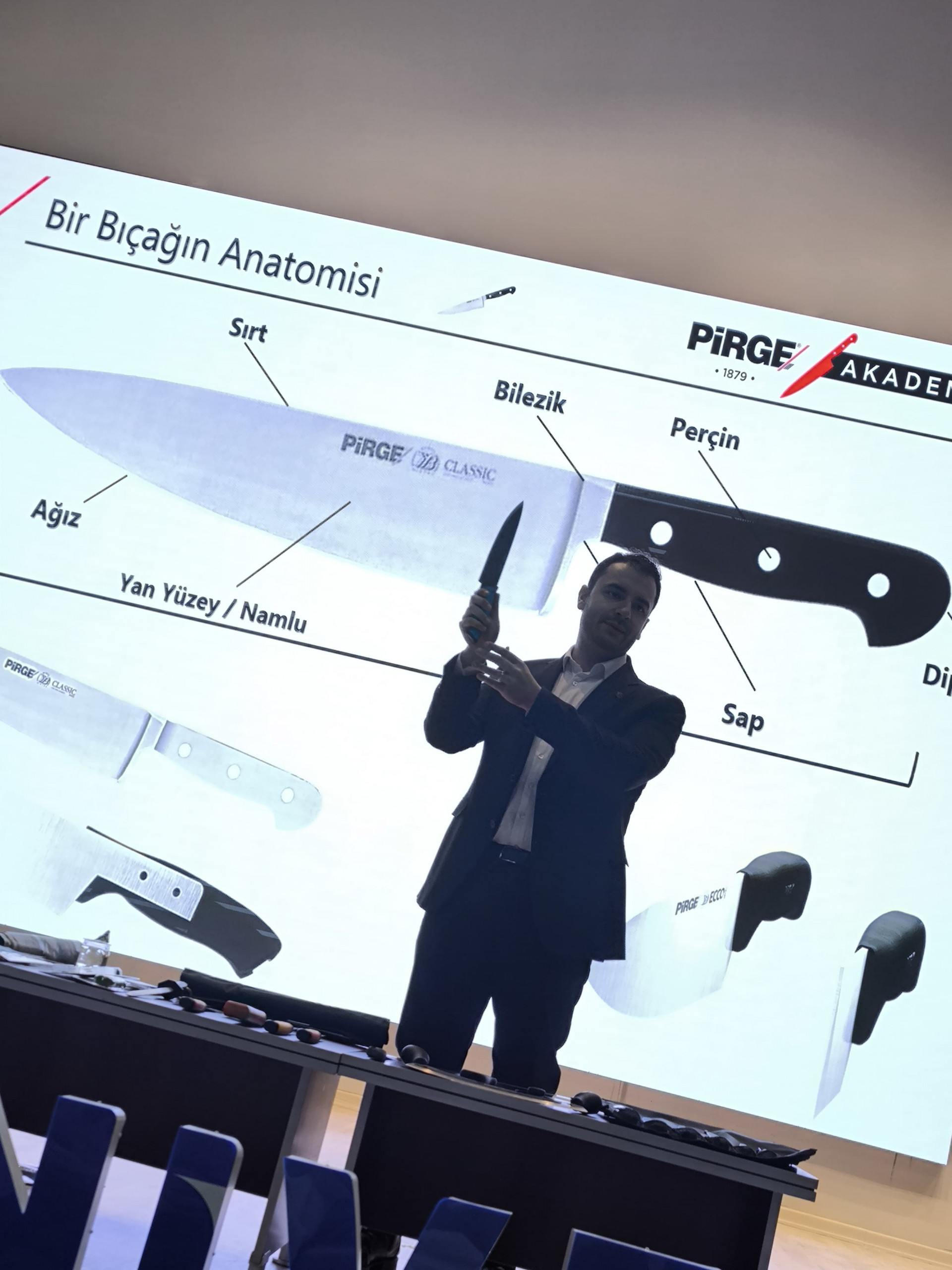 Fakültemiz Gastronomi ve Mutfak Sanatları öğrencileri, profesyonel bıçak kullanımı konusunda Pirge Kurumsal Eğitim Uzmanı Fırat ERBİL'den kapsamlı bir eğitim aldı. Konferans Salonu’nda düzenlenen eğitimde, farklı bıçak türleri, kullanım amaçları ve doğru teknikler hakkında bilgiler verildi.