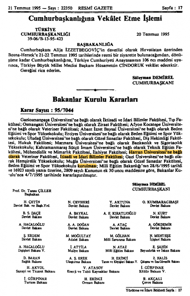 Fakülte/ Bölüm Kuruluş- Resmi Gazete