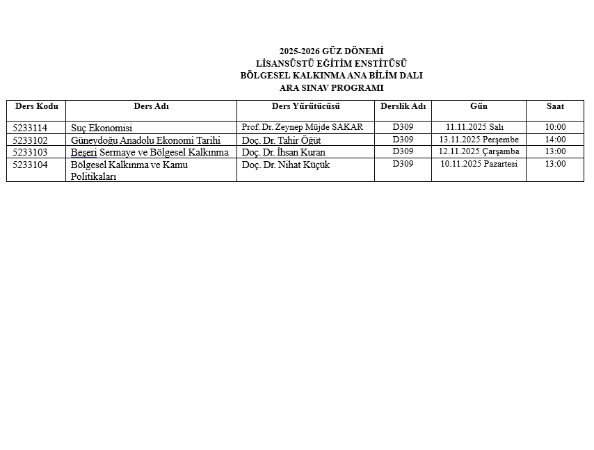 2025-2026 Güz Dönemi Lisansüstü Ara Sınav (Vize) Programı