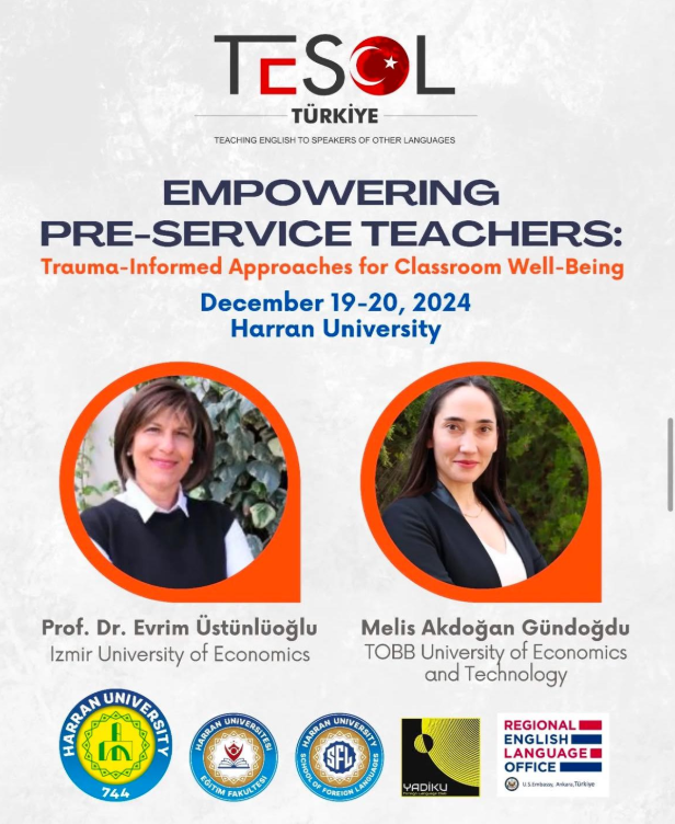 Travma Duyarlı Eğitim Yaklaşımlarından Sürdürülebilir Kalkınma Hedeflerine, Resimli Çocuk Kitaplarından Öğretmen ve Öğrenci Refahına dek birçok alt konunun da yer aldığı eğitim projesini planlayıp organize eden TESOL Türkiye Yönetim Kurulu Başkanı Melis Akdoğan Gündoğdu ve Yönetim Kurulu Üyesi Evrim Üstünoğlu’na; projenin gerçekleşmesi için aracı kulüp olarak çalışan Üniversitemiz Yabancı Dil Kulübü (@yadikuharran) Akademik Danışmanı öğretim elemanımız Öğr. Gör. Hüseyin Koç’a; projeyi maddi olarak destekleyen TESOL Türkiye ve ABD Ankara Büyükelçiliği’ne ve en önemlisi de büyük bir heyecan ve motivasyonla etkinliğe dahil olup bunun bir eğitime dönüşmesinde en büyük katkıyı sağlayan ELT Bölümü dördüncü sınıf öğrencilerimize teşekkür ederiz.