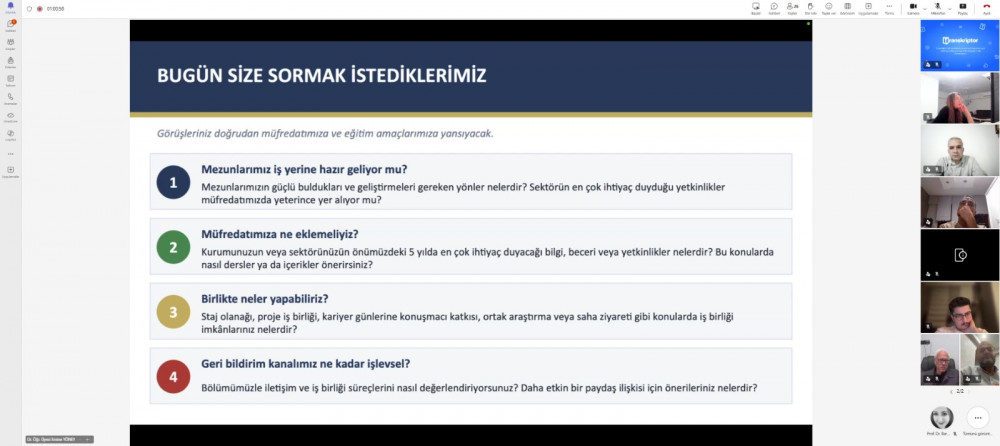 Paydaşlar tarafından mezunların özellikle mevzuat bilgisi, bilgisayar kullanımı, muhasebe programları ve pratik uygulama alanlarında daha güçlü desteklenmesi gerektiği dile getirildi. Toplantı sonunda elde edilen tüm görüş ve önerilerin analiz edilerek raporlanması, STAR akreditasyon başvurusu dâhil olmak üzere bölümün geliştirme çalışmalarında kullanılması kararlaştırıldı. Bunun yanında dijital ve uygulamalı derslerin güçlendirilmesi, teknolojik kütüphane kurulması, sosyal transkript uygulamasına yönelik adımların sürdürülmesi ve çift anadal ile yandal süreçlerinin ilerletilmesi yönünde değerlendirmeler paylaşıldı.