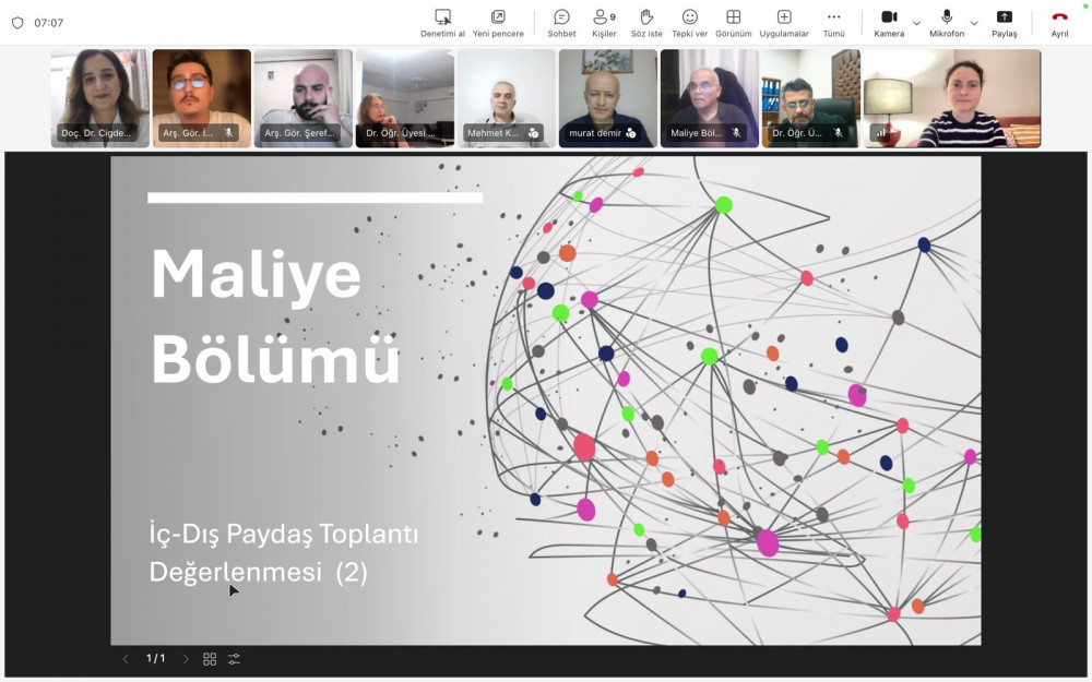 Bölümümüz tarafından iç ve dış paydaş toplantısı çevrim içi olarak gerçekleştirildi. Toplantıda STAR akreditasyon süreci kapsamında Maliye Lisans Programının mevcut durumu, eğitim amaçları, müfredat yapısı ve mezun yeterlilikleri paydaş görüşleri doğrultusunda değerlendirildi. Görüşmelerde özellikle mezunların kamu ve özel sektöre hazırlık düzeyi, uygulama becerileri, staj imkânları, Erasmus hareketliliği, dijital yetkinlikler ve güncel mesleki ihtiyaçlar üzerinde duruldu.
