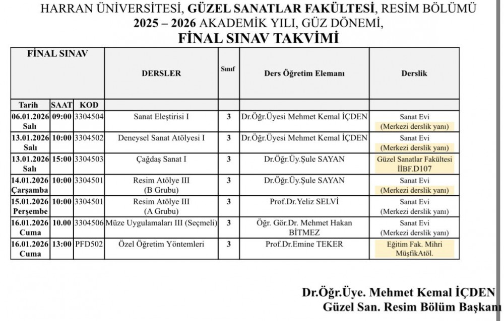 29.11.2025 Güncellenmiş Final sınav takvimini aşağıdaki bağlantılara tıklayarak görebilirsiniz.