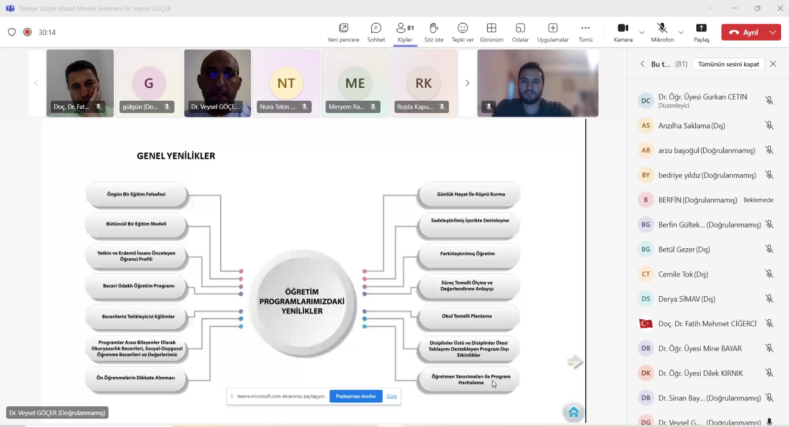 Sınıf Eğitimi Ana Bilim Dalımızın organize etmiş olduğu "Türkiye Yüzyılı Maarif Modeli Öğretim Programları" seminerleri kapsamında 28 Nisan Pazartesi günü Dr. Veysel GÖÇER tarafından programlara genel bakış anlamında online olarak, 29 Nisan Salı günü Ana Bilim Dalı başkanımız Doç. Dr. Fatih Mehmet CİĞERCİ tarafından Türkçe Öğretim Programı üzerine yüz yüze şeklinde, 30 Nisan Çarşamba günü Dr. Veysel GÖÇER tarafından Matematik Öğretim programı üzerine online olarak ve 02 Mayıs Cuma günü Dr. Öğr Üyesi Sinan ARI tarafından Hayat Bilgisi Öğretim Programı üzerine online olarak seminerler düzenlendi. Seminerlere fakültemiz öğretim elemanları ve öğrencileri katılım sağladı.