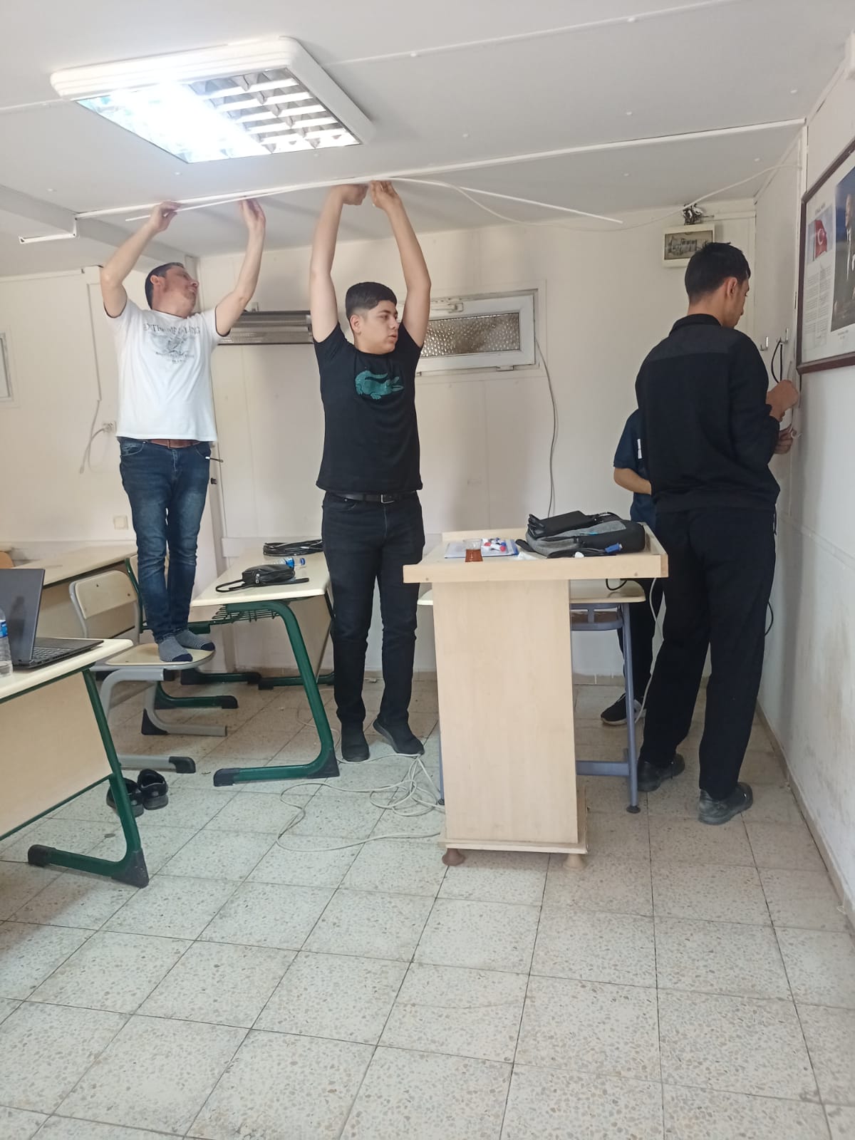 Bilgisayar Teknolojileri Bölüm Başkanı Öğr. Gör. Serkan KORKMAZ, bilgisayar programcığı öğrencileri ile birlikte bilgisayar programcılığı dersliklerinde bulunan projeksiyon cihazlarının kontrolünü ve tadilatını gerçekleştirmişlerdir. Yapılan uygulamada yüksek okulumuzda atıl durumda bulunan projeksiyon kabloları test edilerek çalışır vaziyette olan projeksiyon kablosunun tavanlara ve duvarlara monteli halde bulunan kanaldan geçirilerek montajını ve testini birlikte gerçekleştirmişlerdir.