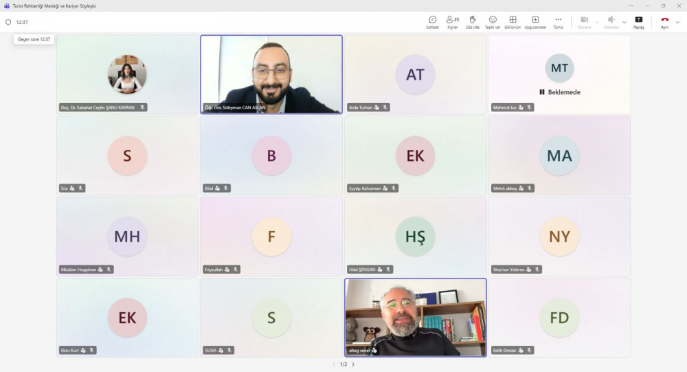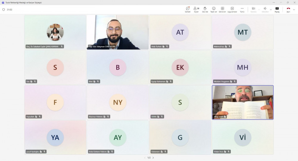 Yüksekokulumuz Seyahat, Turizm ve Eğlence Hizmetleri Bölümü Turist Rehberliği Programı tarafından düzenlenen “Turist Rehberliği Mesleği ve Kariyer” konulu söyleşi, 24 Şubat 2026 tarihinde çevrim içi ortamda, Öğr. Gör. Süleyman Can ASLAN moderatörlüğünde ve bölüm öğretim elemanlarının katılımıyla gerçekleştirildi.