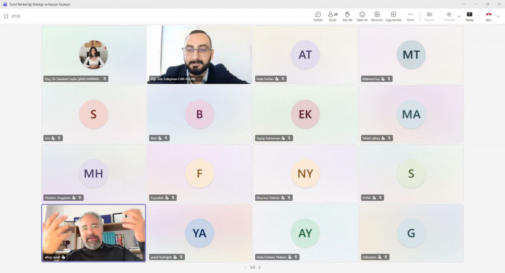 Söyleşiye konuk olarak katılan Ülkesel alanda Profesyonel Turist Rehberi Altuğ ŞENEL, turist rehberliği mesleğinin önemi, sektördeki gelişmeler, mesleki deneyimleri ve kariyer planlamasına ilişkin önemli bilgiler paylaşarak rehberlik mesleğinde iletişim becerilerinin, kültürel donanımın ve yabancı dil öğrenmenin önemine dikkat çekmiş; öğrencilerin sektöre hazırlanma sürecinde göz önünde bulundurmaları gereken hususlar hakkında önerilerde bulunmuştur.