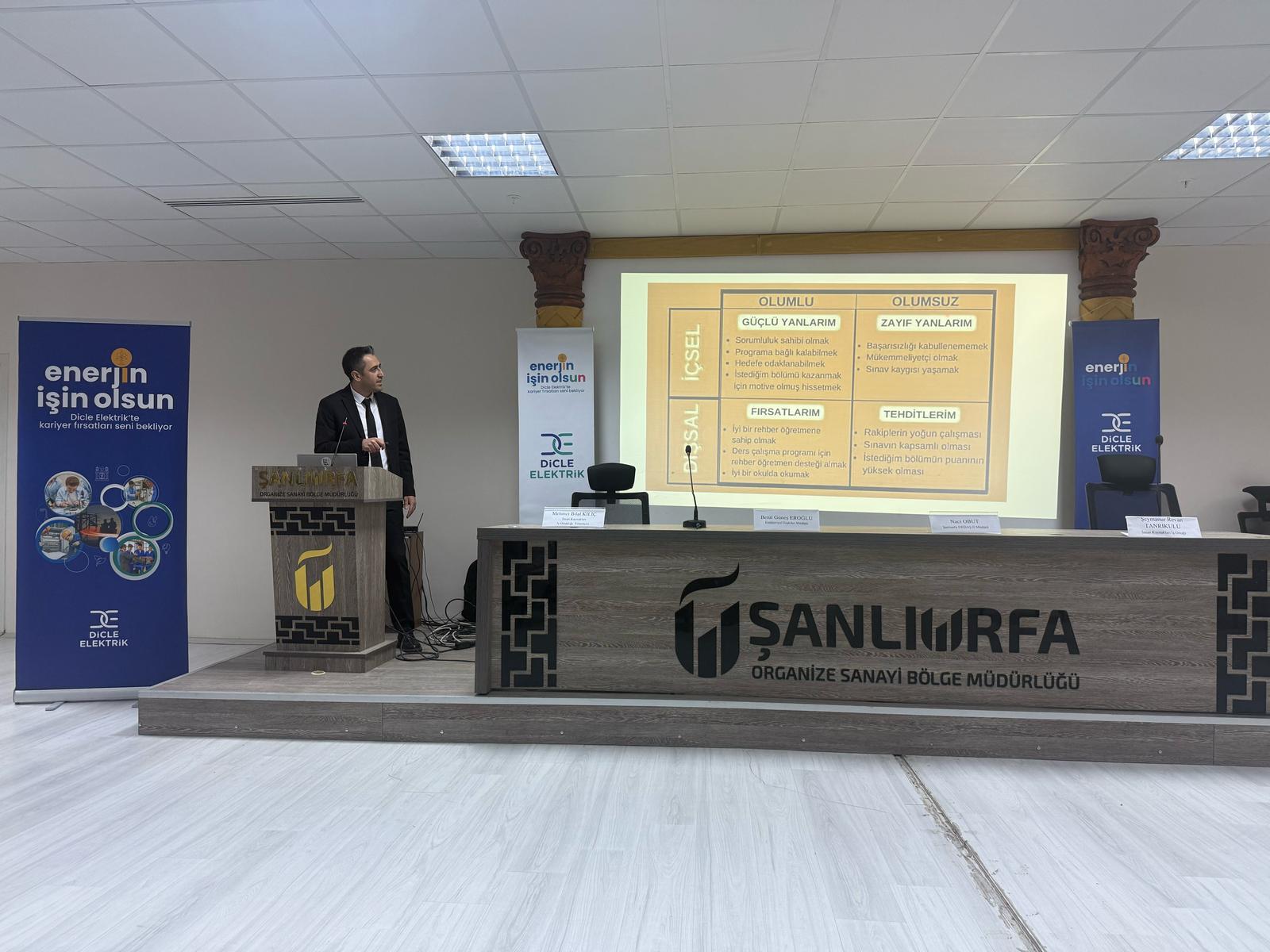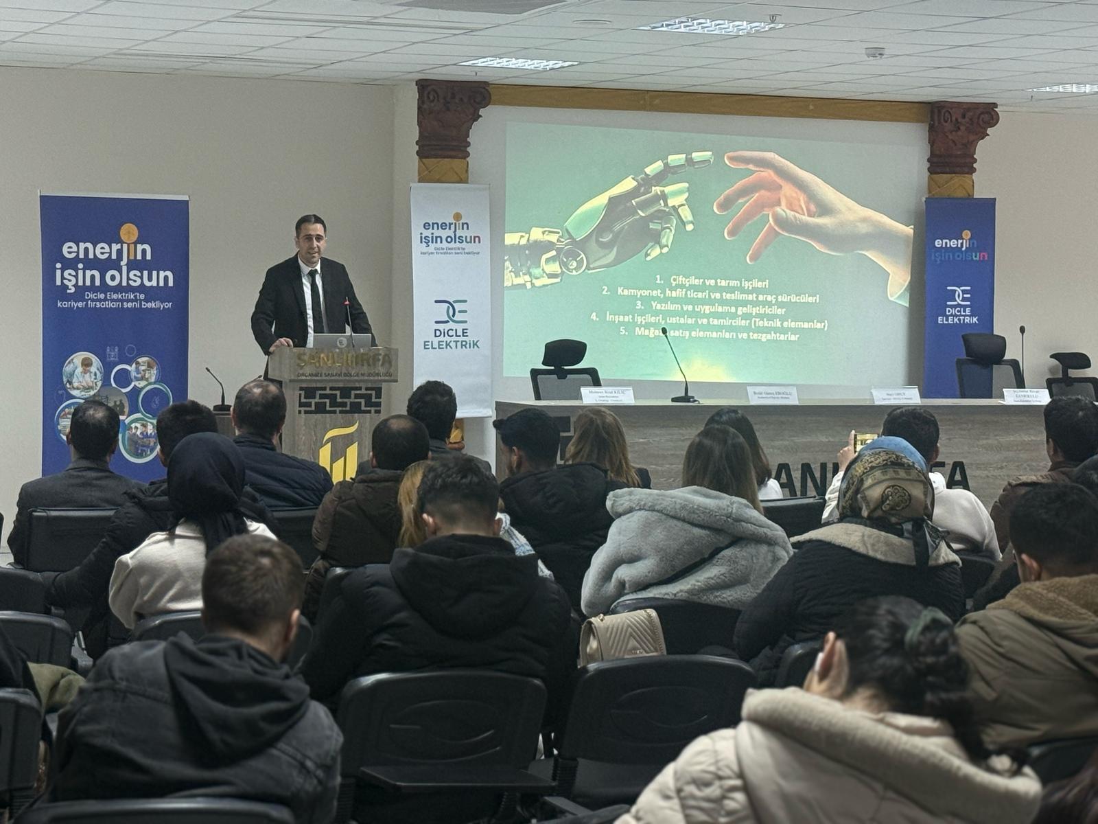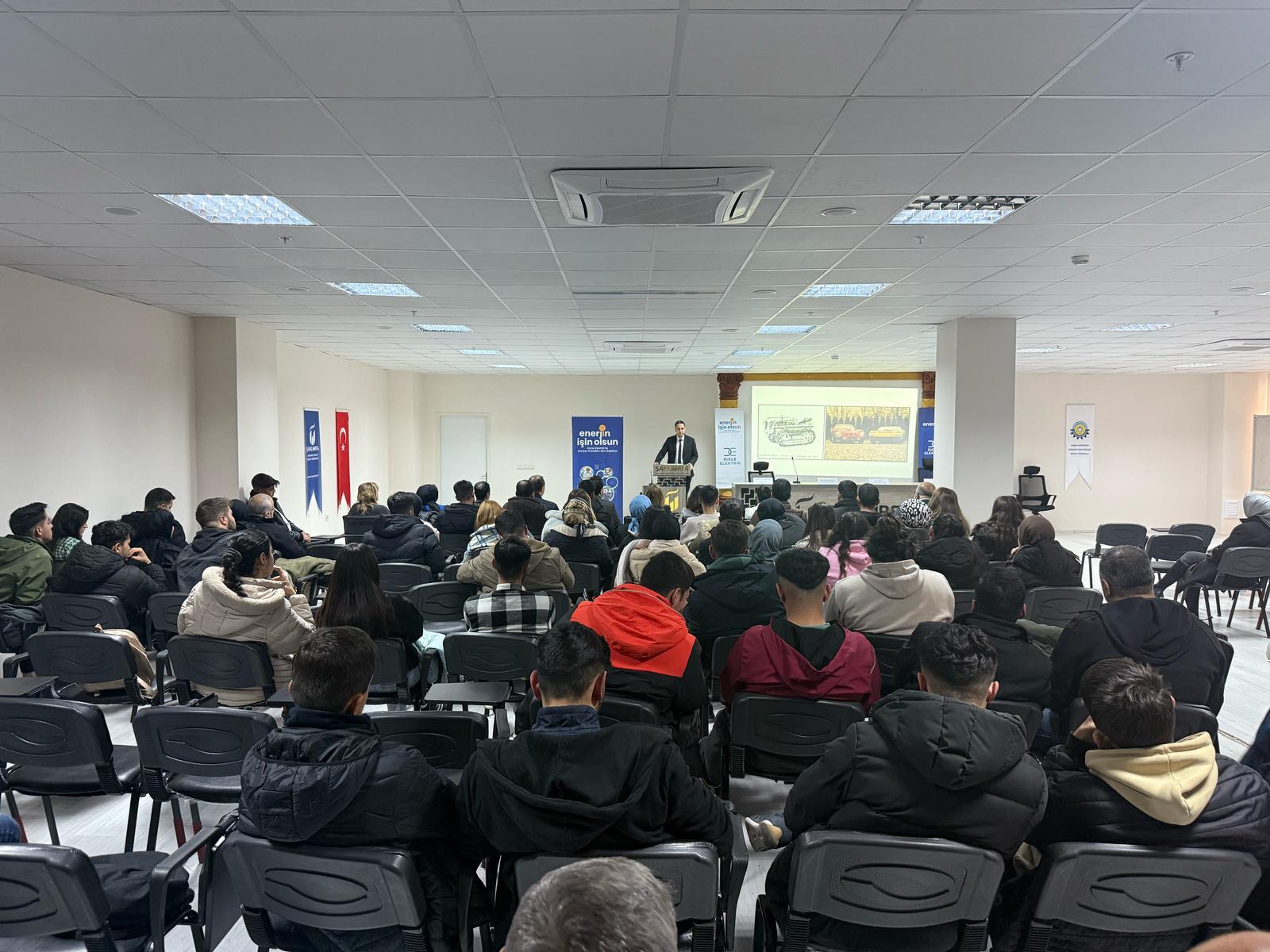 Yüksekokulumuz Elektronik Teknolojisi Programı tarafından 26.02.2025 tarihi saat 13:30'da tüm okul öğrencilerimizi kapsayan "Enerjin İşin Olsun" konulu söyleşi düzenlenmiştir. Söyleşide Dicle Elektrik Dağıtım A.Ş. İnsan Kaynakları İş Ortağı Yöneticisi Mehmet Bilal KILIÇ konuğumuz olmuştur. Verimli söyleşisi için kendilerine teşekkür ederiz.