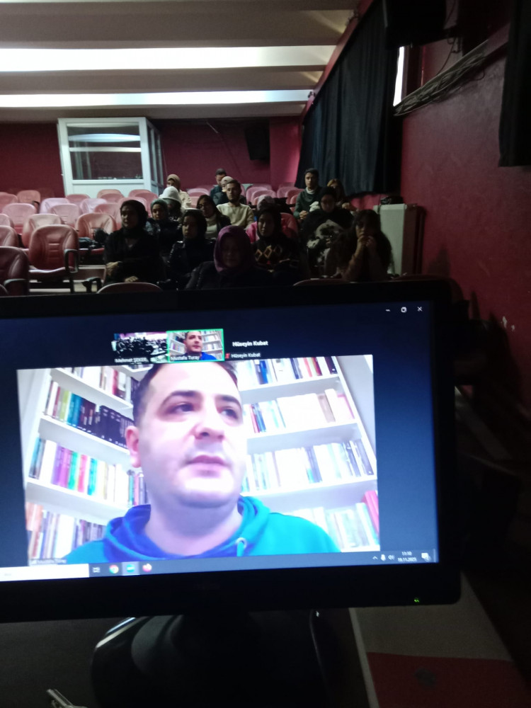 Kısa film yönetmeni Mustafa Turay, Şanlıurfa Sosyal Bilimler Meslek Yüksekokulu Radyo ve Televizyon Programcılığı öğrencileriyle okulun sinema salonunda gerçekleştirilen online söyleşi kapsamında bir araya geldi. Söyleşiye yoğun ilgi gösteren öğrenciler, kısa film üretim süreci hakkında kapsamlı bilgiler edinme fırsatı buldu.