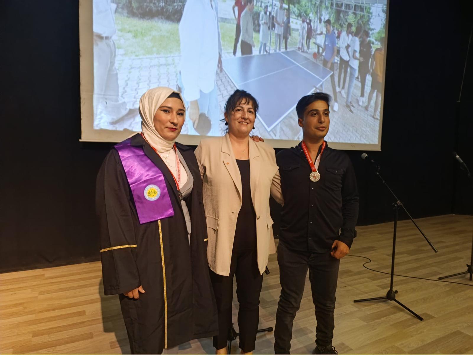 Mezuniyet Törenimiz, Yüksekokulumuzda dereceye giren öğrencilerimize belgelerinin taktim edilmesi, Yüksekokul Birincisi Meliha POLAT’ın yaş kütüğüne künye çakması, mezun öğrencilerimize diplomalarının verilmesi, kep atma merasimi ve hatıra fotoğraflarının çekilmesiyle ile son buldu.