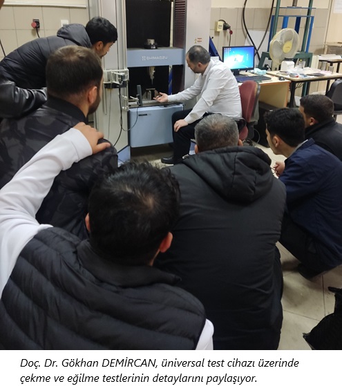 İklimlendirme ve Soğutma Programı Öğrencilerimiz için "Malzeme Bilgisi Dersi" kapsamında Makina Mühendisliği Malzeme ve Mekanik Laboratuvarlarında konularında uzman Doç. Dr. Gökhan DEMİRCAN ve Dr. Öğr. Üyesi Abuzer AÇIKGÖZ tarafından " Malzemelere Uygulanan Mekanik Testler (Çekme, Basma, Eğilme, Tokluk, Aşındırma, Yorulma, ile Sertlik ölçme) Kompozit malzemelerin üretimi ve kullanım alanları konularında detaylı bilgiler verildi ve uygulama yapıldı.