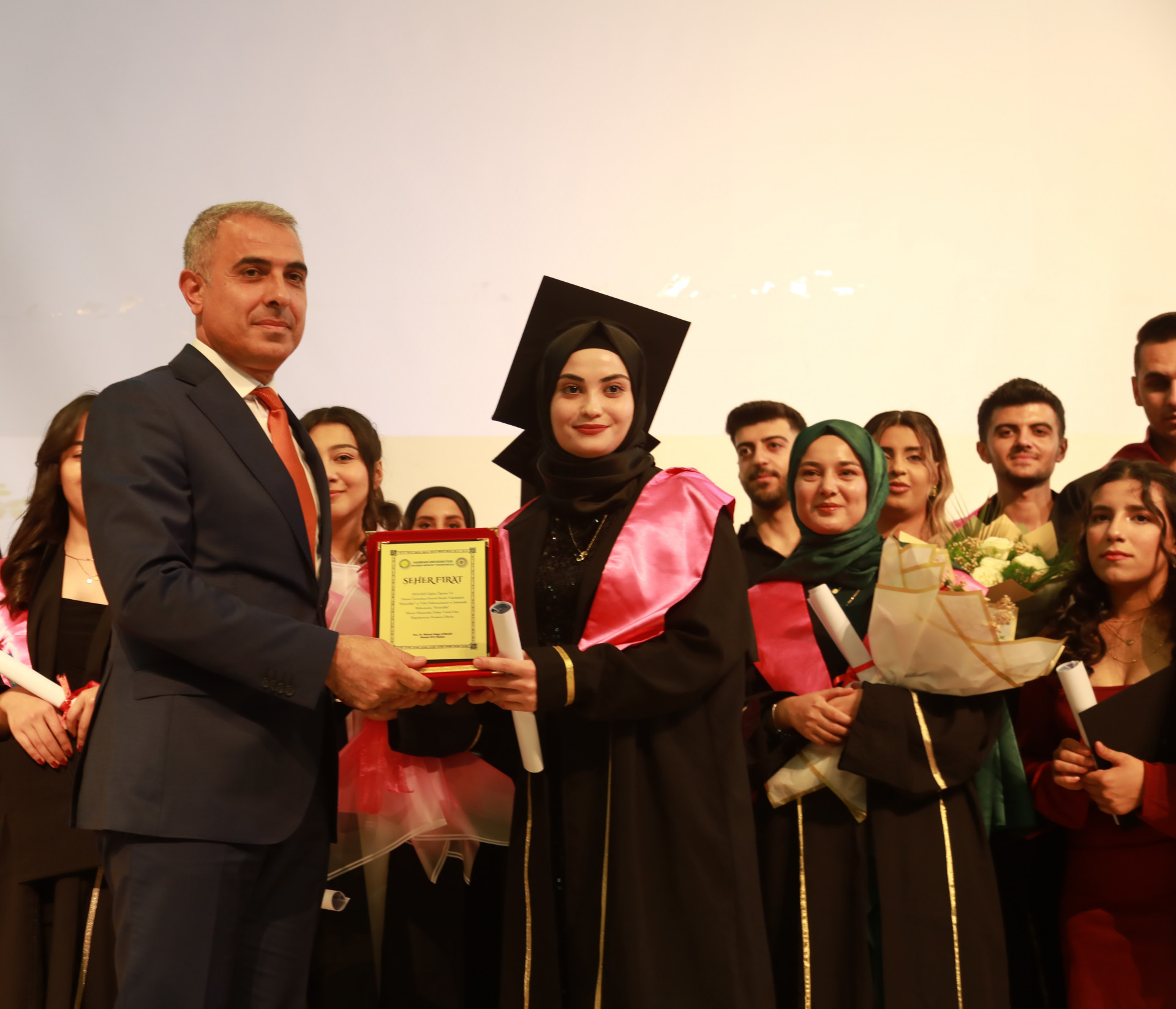 Meslek Yüksekokulumuz ve Siverek Uygulamalı Bilimler Fakültesinin 2025 mezuniyet töreni 30 Mayıs 2025 Cuma günü saat 16.30 da Şanlıurfa Büyükşehir Belediyesi Siverek Kültür Merkezinde düzenlendi. Törene 107. Topçu Alay Komutanı Topçu Albay Hüseyin BURMA, Belediye Başkan Vekili Cumali BAYRAM, İlçe Emniyet Müdürümüz Tuncay YARDIM, Uygulamalı Bilimler Fakültesi Dekanı Prof.Dr.Dursun AKASLAN, Meslek Yüksekokulumuz Müdürü Doç.Dr. Mehmet Rağıp GÖRGÜN, Hilvan Meslek Yüksekokulu Müdürü Öğr.Gör.Serap ATEŞ, Daha önceki okulumuz Müdürlerinden Prof.Dr.İrfan ÖZBERK, Akçakale MYO Müdür Yardımcısı Doç.Dr. Fethiye ÖZBERK, Siverek Devlet Hastanesi Başhekimi Uzm.Dr. Ahmet YİĞİTBAY, Milli Eğitim Şube Müdürü Şaban BOZKURT, Halk Eğitim Merkezi Müdürü İbrahim BAYKAN, Ziraat Odası Başkanı Ahmet Ersin BUCAK, Ticaret ve Sanayi Odası Yönetim Kurulu Üyesi İzzet POLATOĞLU, Hidayet POLATOĞLU Terziler Odası Başkanı Hanefi AY, Madeni Eşyalar Odası Başkanı Haci İNAN,Eyüp Cenap Gülpınar Gençlik Merkezi Müdürü Mehmet TAŞLI, Memursen Temsilcisi Fikret ASLANPARÇASI, Tema Vakfı Siverek Temsilcisi Sertaç İLHAN, TÜGVA temsilcisi Ramazan LALE, Sivilder Onursal Başkanı Koçali AYMAZ, dernek Sivil toplum örgütleri temsilcileri, Okulumuz Öğretim Üyeleri, Öğretim Görevlileri, Basın Mensupları, Öğrenciler ve Aileleri katıldılar. Törende Okul Birincimiz Seher FIRAT ve Uygulamalı Bilimler Fakültesi Birincisi Ala ABDALLAH birer konuşma yaptılar. Okulumuz Müdürü Doç.Dr. Mehmet Rağıp GÖRGÜN, Uygulamalı Bilimler Fakültesi Prof.Dr. Dursun AKASLAN’ın konuşmasının ardından Belediye başkan Vekili Cumali BAYRAM mezun öğrencilere başarılar diledi. Mezuniyet törenin de bölümlerimizde dereceye giren öğrencilere plaketleri verildikten sonra kep atan öğrenciler müzik eşliğinde halay çekerek bu önemli günlerini kutladılar.