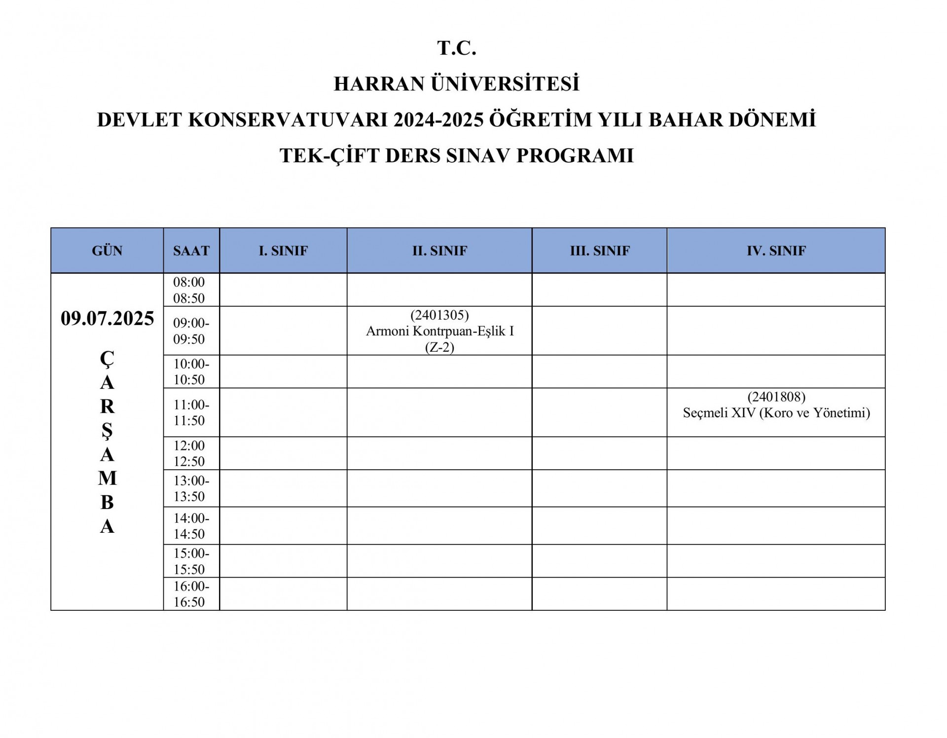 2024-2025 Eğitim-Öğretim Yılı Bahar Dönemi Tek-Çift Ders Sınav Programı