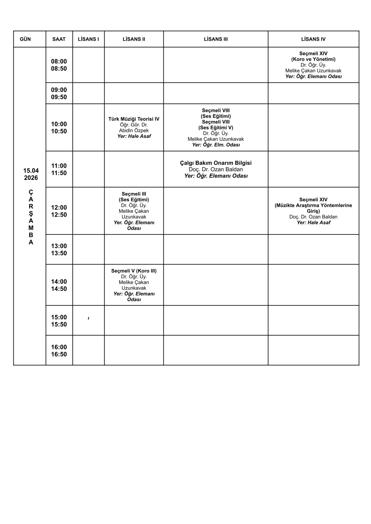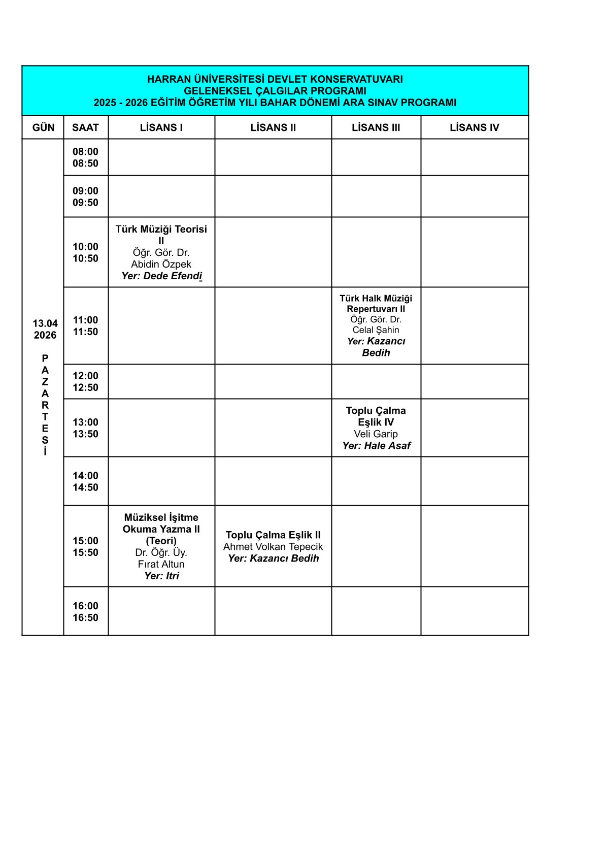 2025-2026 Eğitim-Öğretim Yılı Bahar Dönemi Ara Sınav Programı