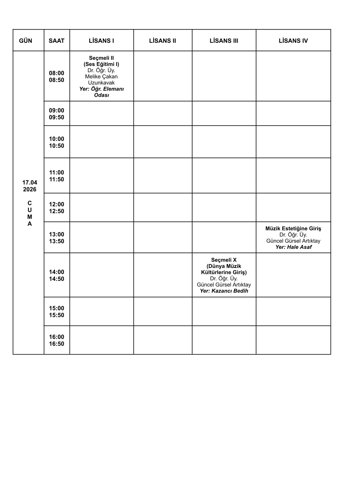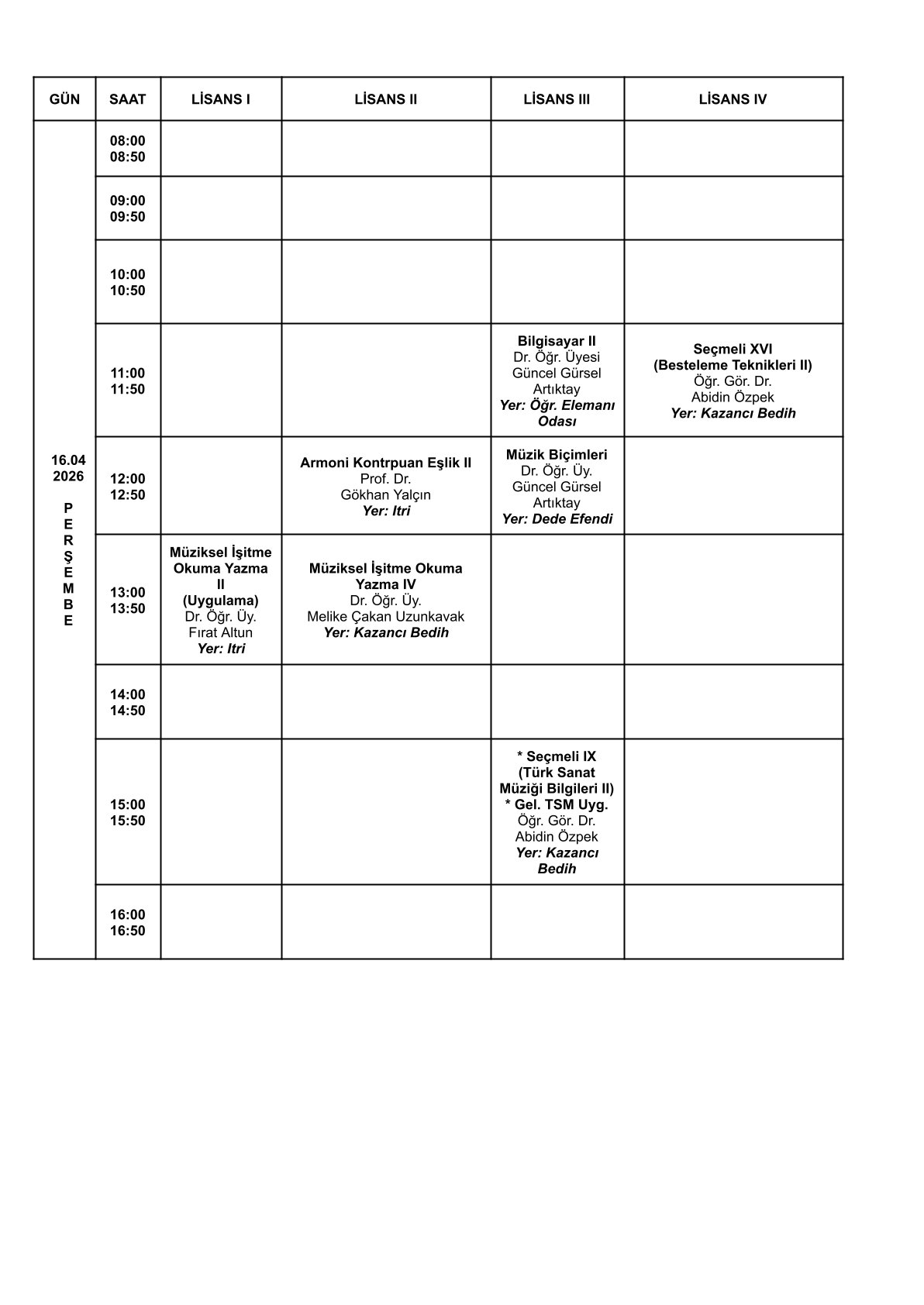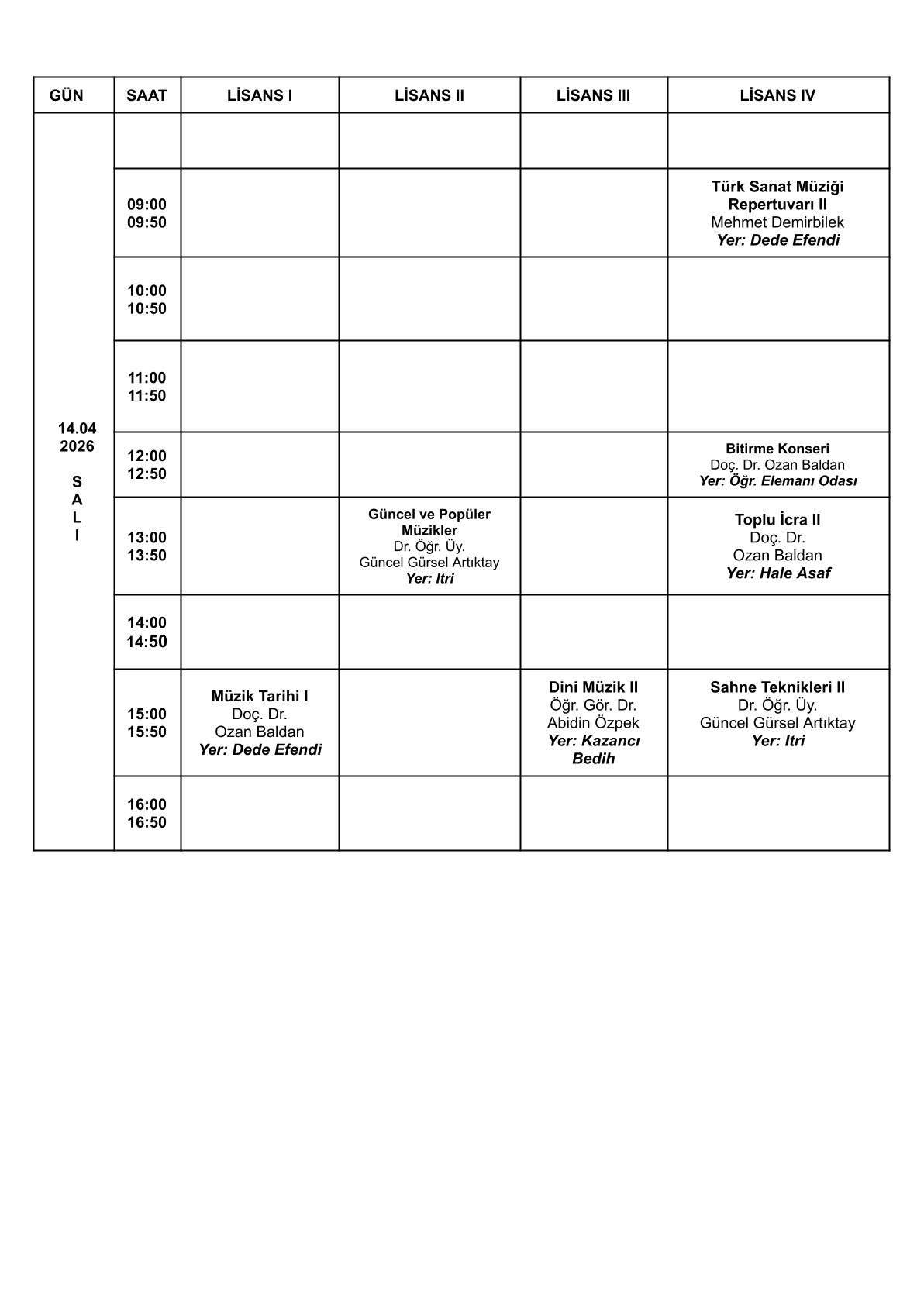 Sınav Programı İçin