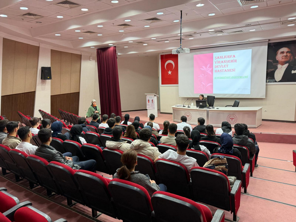 Viransehir Devlet Hastanesi enfeksiyon hemşiresi ve eğitim hemşireleri tarafından öğrencilerimize hastane enfeksiyonu ve güvenliği eğitimi verilmiştir.
