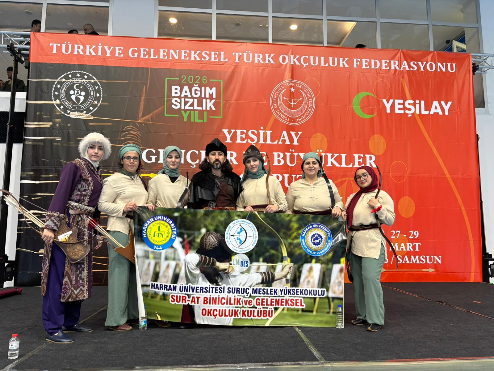Üniversitemiz Sağlık Kültür ve Spor Daire Başkanlığı bünyesinde faaliyet gösteren Sur-At Binicilik ve Geleneksel Okçuluk Kulübü, 27–29 Mart 2026 tarihleri arasında Samsun’da düzenlenen Geleneksel Türk Okçuluğu Türkiye Şampiyonası’na katılım sağladı. Öğretim Görevlisi Serhan GÜNGÖR’ün kafile başkanlığında gerçekleştirilen organizasyonda kulüp sporcularımız üniversitemizi temsil etti. Geleneksel Türk okçuluğunun yaşatılması ve yaygınlaştırılması açısından büyük önem taşıyan şampiyonada öğrencilerimiz hem sportif hem de kültürel anlamda önemli bir deneyim elde etti. Üniversitemiz, misyonu doğrultusunda geleneksel sporların yaşatılması ve gelecek nesillere aktarılması amacıyla öğrencilerimizin bu alandaki faaliyetlerini desteklemeye devam etmektedir
