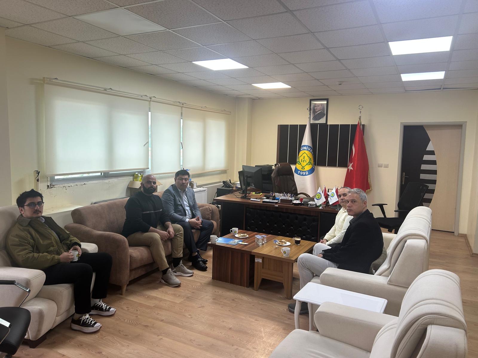 Dr. Nurgabdeshov, ziyareti kapsamında Erasmus Kurum Koordinatör Yardımcımız Prof. Dr. Mustafa Şit ile bir araya geldi. Görüşmede, her iki kurum arasında kurulabilecek stratejik köprüler, akademik hareketlilik ve iş birliği imkanları detaylı bir şekilde ele alındı.